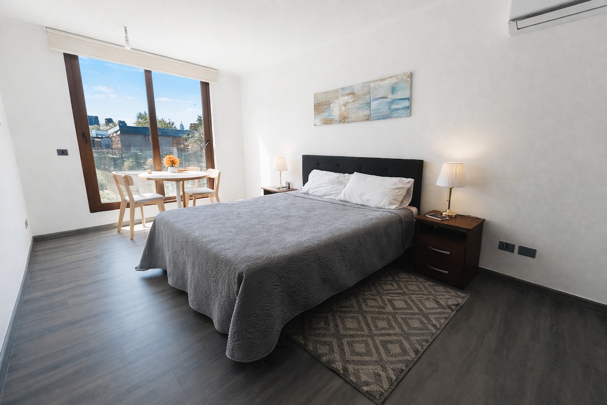 Disfruta de una estadía cálida en el corazón de Santiago. Un espacio ideal para dos personas, frente al emblemático Parque y a solo minutos caminando del metro. Con un diseño acogedor que combina lo moderno y funcionalidad para ofrecerte el descanso que mereces. Ubicación privilegiada: conexión directa a museos, transporte público y barrios históricos. Cuenta con Wi-Fi rápido, cocina equipada, cama cómoda y luz natural. Vistas al parque y tranquilidad urbana: un refugio en medio de la ciudad.