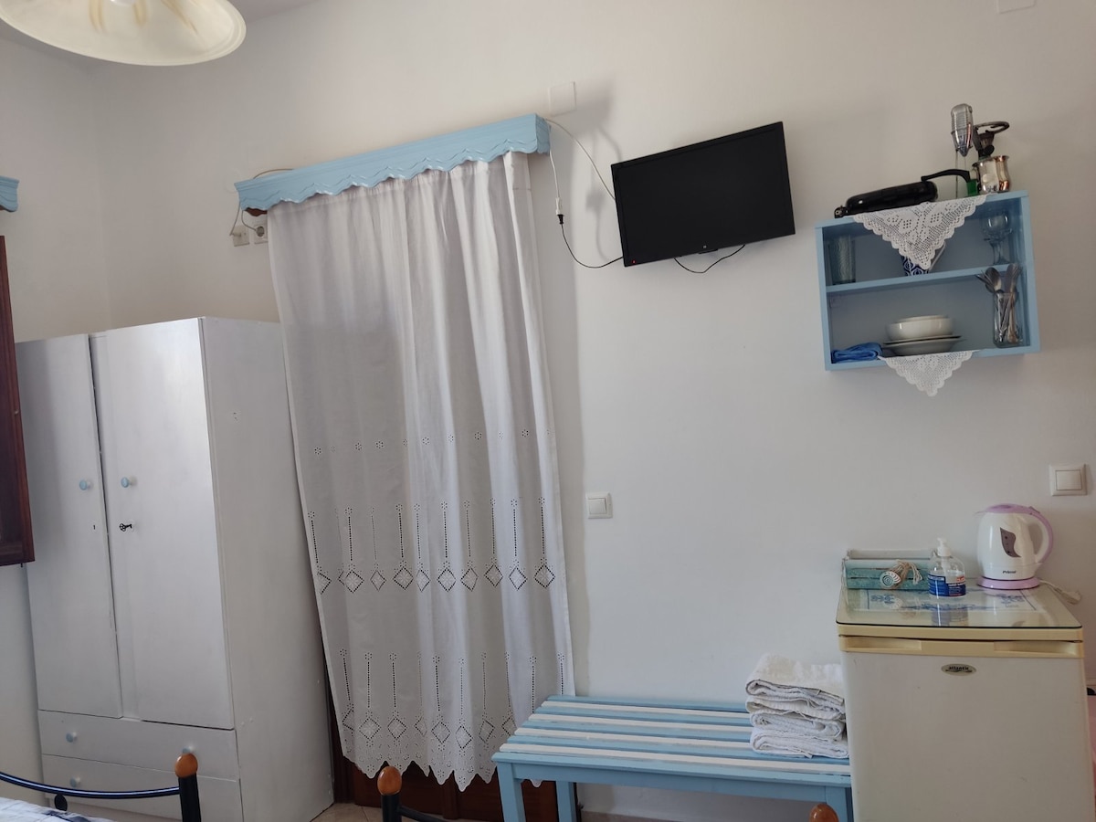 Acogedor y cómodo estudio a 300 metros del puerto de Skala y a 200 metros del mar. Se encuentra en un lugar tranquilo y seguro, aunque la vida de la ciudad y los clubes nocturnos están a la vuelta de la esquina (supermercado, farmacia, panadería, restaurantes, mercado de frutas, estación de autobuses y otras tiendas). La acogedora y pequeña cocina tiene todo lo que necesitas. La cueva de San Juan de Apocalipsis está a 10 minutos a pie del sendero tradicional.