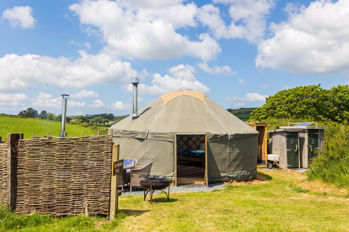 Bramble Yurt se encuentra en un tranquilo camping familiar en el corazón de Pembrokeshire. Con capacidad para 5 personas, tendrás tu propia cabaña de cocina privada, espacio al aire libre, baño privado y área de ducha, además de acceso a todos los servicios del camping. El estacionamiento está justo al lado de la yurta. Nuestra pequeña tienda de campamento vende algunos artículos esenciales, artículos para hacer fogatas, helados y paquetes de desayuno / barbacoa (de nuestra carnicería local). También vendemos miel y huevos de nuestras propias abejas, pollos y patos.