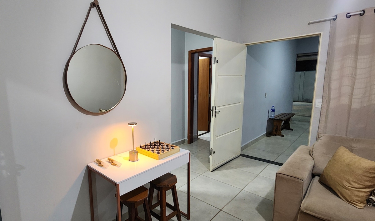 Si está buscando un lugar para relajarse o incluso hacer su trabajo remoto, ¡nuestra propiedad es perfecta para usted! La casa tiene 2 habitaciones cómodas y 2 baños bien equipados, sala de estar con sofás y TV de pantalla plana y un área de trabajo con una mesa espaciosa. Su cocina está totalmente equipada, con todos los utensilios necesarios. La ubicación de la casa es ideal para quienes buscan tranquilidad. ¡Reserve ahora y disfrute de una estancia cómoda y relajante!