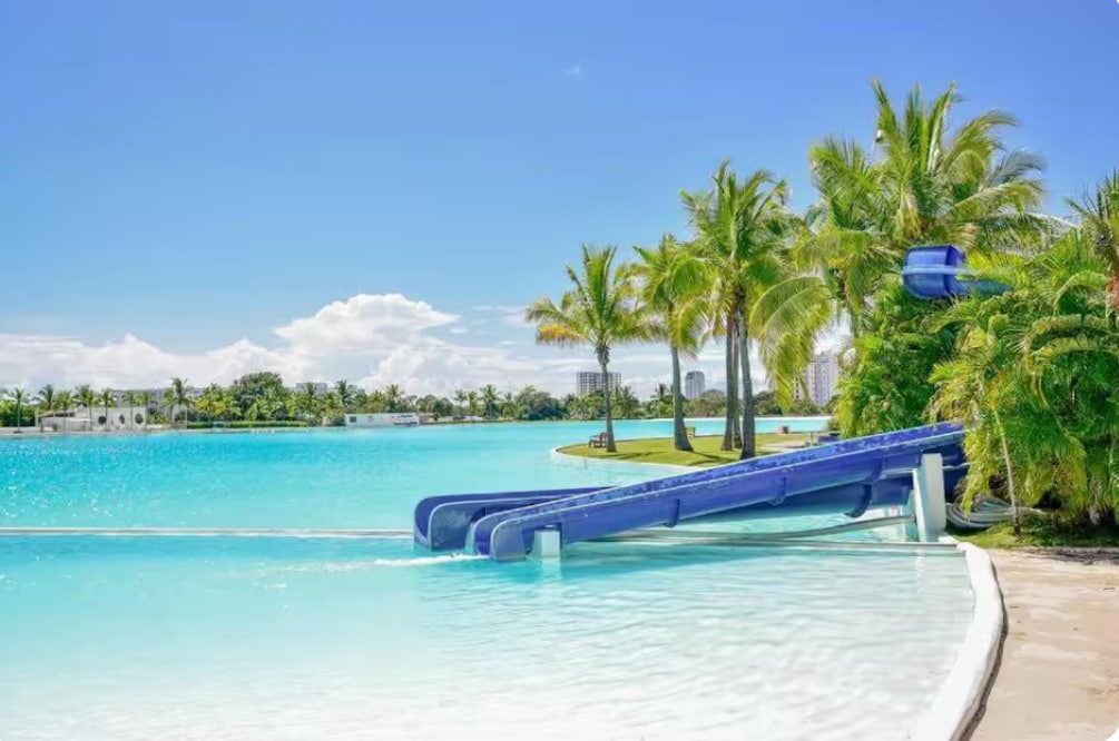 Apartamento 1F Waterways - Playa Blanca Beach & Lagoon Residences Rio Hato, Coclé, Panamá. Cuenta con grandes amenidades, tres habitaciones completas, una habitación pequeña (junto a la lavandería). Area social privada, vista a la segunda piscina más grande de Centroamérica la cual posee toboganes, el acceso es de 6 personas diarias; vista lejana al Mar. Se encuentra a 20 minutos del Aeropuerto de Internacional Scarlett Martínez y a 10 minutos de Plaza Mares donde se encuentra distintas tiendas.