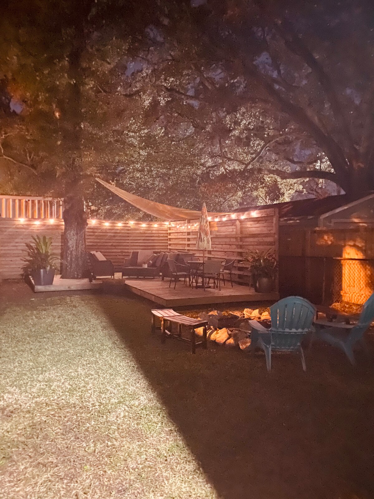 The photos don't capture this; tropical palms overhead, butterflies everywhere, string lights waiting for evening.Step through the gate.. your cypress cottage with treehouse style loft. That 100-year-old clawfoot tub. The outdoor shower everyone raves about. Hot tub under stars. Hammock between palms. Covered deck with grill. Fenced yard for your pup. Walk to coffee, drive 15 mins to white beaches. But you'll want to stay right here.Our guests say it best: magical, restorative, transformative.