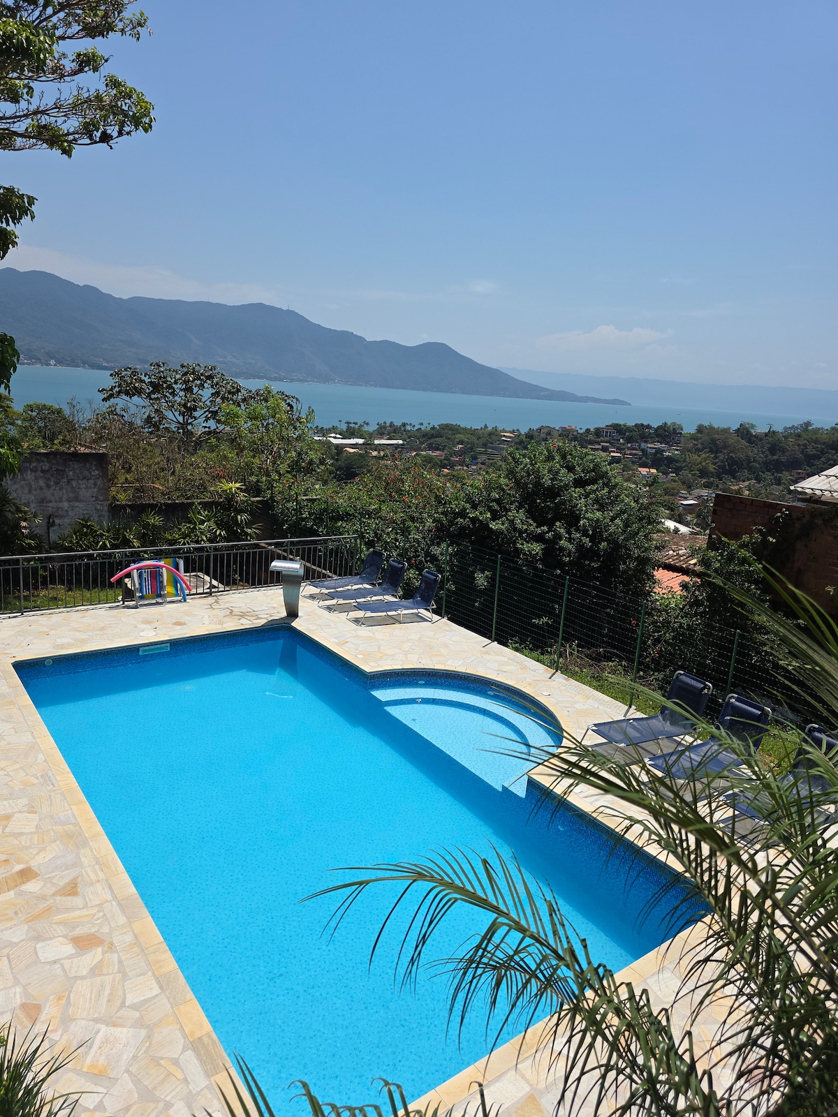 Casa (120 m2) en el antiguo parque acuático de Ilhabela con 2 baños, cocina completa, wifi rápido (1000 Mbps de fibra óptica), zona con su propio patio con barbacoa y piscina natural para el uso exclusivo de quienes alquilan esta casa. En la segunda planta, se encuentra la suite con vistas a las estrellas desde la cama tamaño king, la bañera y el balcón. El gran balcón con mesa de billar y hamaca conduce a un puente al mirador de las cascadas. Ubicación muy céntrica, cerca de las playas, ya sea al sur, Vila, norte u otro lado de la isla.