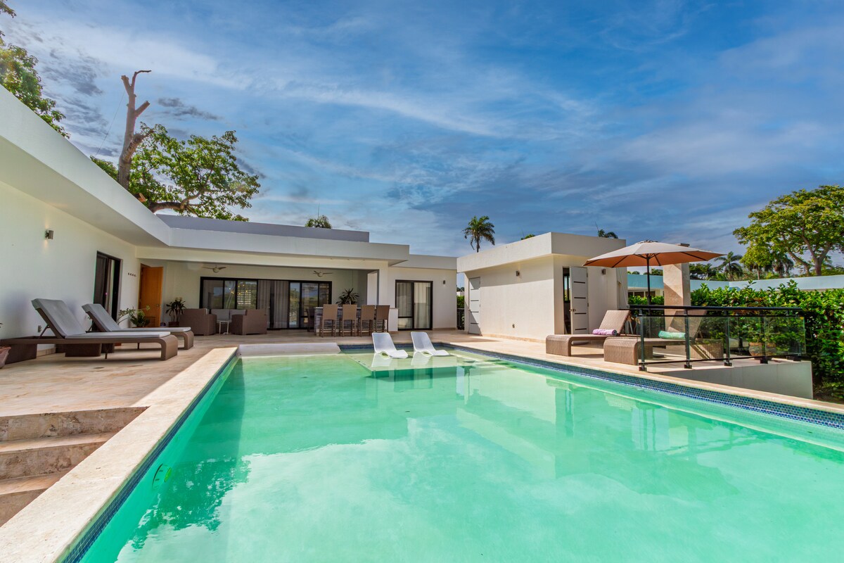 Esta moderna villa se encuentra en una comunidad cerrada a 5 minutos a pie de la playa y del Natura Cabana Resort. En las inmediaciones hay disponibles servicios de spa, masajes y clases de yoga. La villa tiene 3 dormitorios, cada uno con baño privado. La suite de los propietarios del segundo piso tiene 2 balcones para tomar aire fresco. La piscina de aguas cristalinas es el lugar perfecto para nadar o relajarse en una de las tumbonas junto a la piscina. Dentro de la comunidad peatonal encontrarás restaurantes, bares y un mercado boutique. La comunidad cuenta con seguridad las 24 horas.