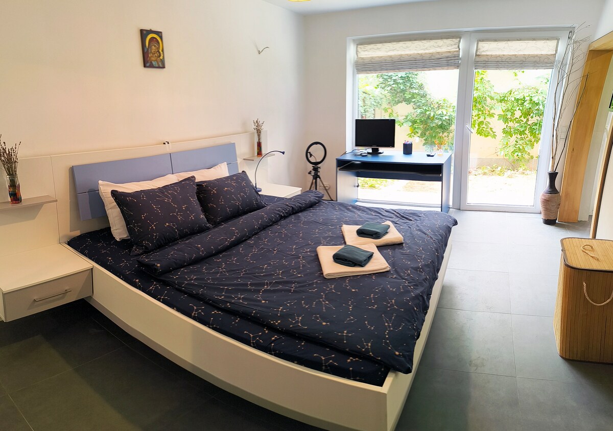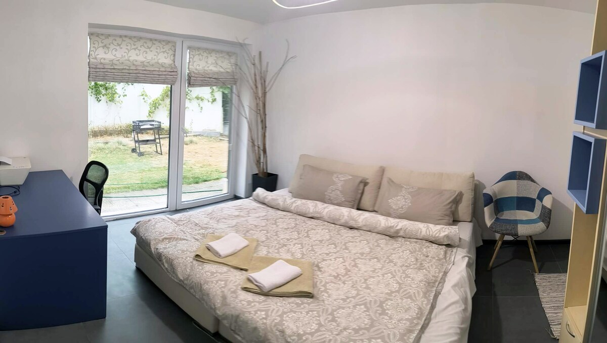 Enjoy a comfortable and stylish stay in this spacious city-center apartment, featuring a cozy bedroom, a living area with dining and desk spaces, a fully equipped kitchen, a modern bathroom, a separate toilet, and a private terrace. Free street parking is available nearby, and you’ll be just steps from South Park and the National Palace of Culture. With the metro only a 5-minute walk away and Bulgaria Mall 2 km from the apartment, it’s the perfect base for exploring the city!