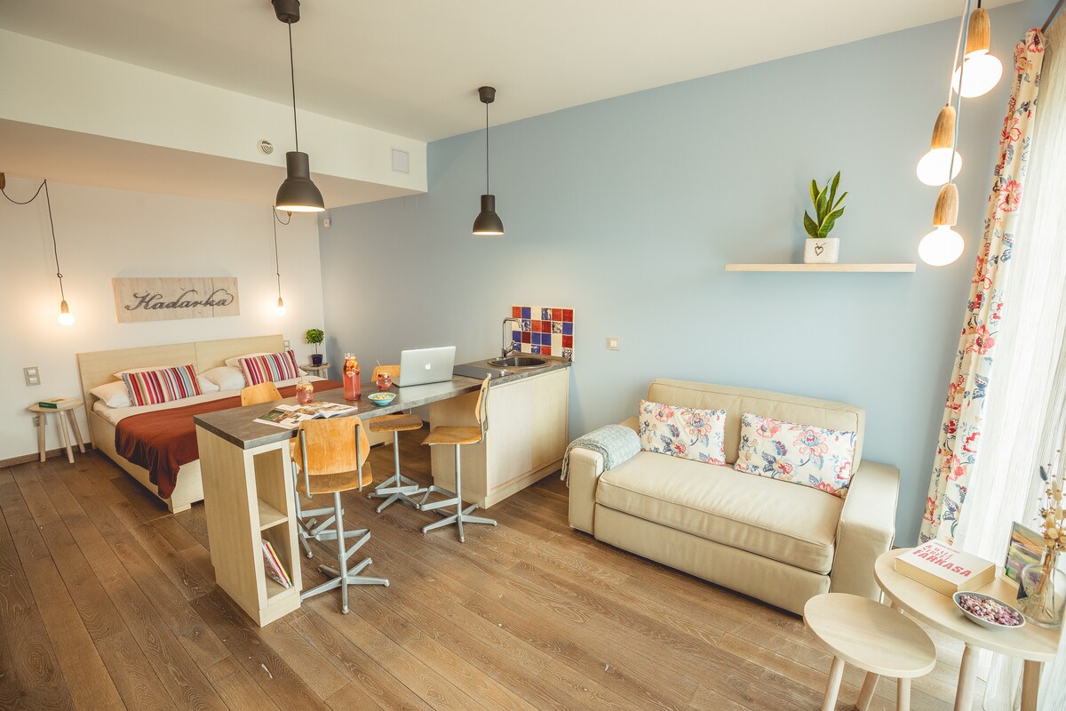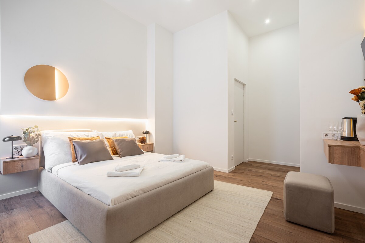 Élvezd a tágas, 40 nm-es Superior apartmanunk kényelmét Budapest szívében! A lakás modern, teljesen felszerelt konyhával, légkondicionálóval és stílusos fürdőszobával vár. A nagy belmagasság és a hatalmas ablakok miatt a tér különösen világos és otthonos. Minden fontos látnivaló sétatávolságra van, reggelente pedig bőséges reggelivel indíthatod a napot a házon belüli étteremben. Ideális választás, ha a belvárosi nyüzsgés mellett fontos számodra a minőségi pihenés is.