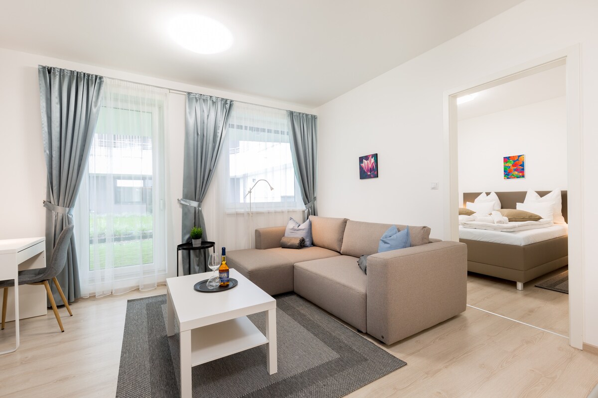 This modern one-bedroom apartment offers a bright and stylish space with a cozy living area, fully equipped kitchen, and sleek bathroom. Large windows bring in plenty of natural light, creating a warm and welcoming atmosphere. Step out onto the private balcony to enjoy fresh air and views of the quiet courtyard. With contemporary design and all essentials provided, it’s perfect for a relaxing stay close to public transport and city attractions.