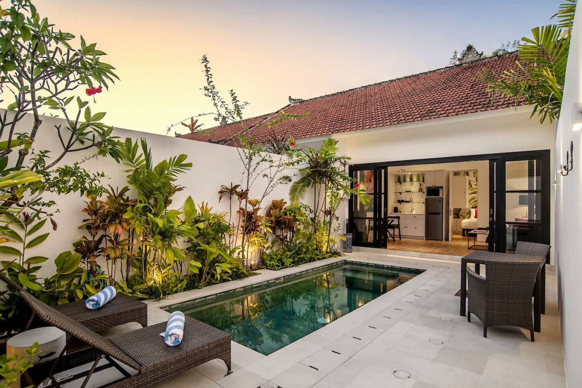 Villa Ruko es una villa privada de lujo con 1 dormitorio y piscina ubicada en el corazón de Seminyak, ¡la capital de compras de spa y boutiques de Bali! Esta villa única está situada en una calle tranquila a pocos pasos de Eat Street. A 2 minutos a pie de Sisterfields. Villa Ruko Seminyak tiene capacidad para dos personas, siendo una villa solo para adultos. La decoración moderna, inspirada en una «tienda», con paredes de hormigón pulido, incluye una zona de cocina moderna completa con incluso una máquina Nespresso para tomar el café de la mañana junto a la piscina.