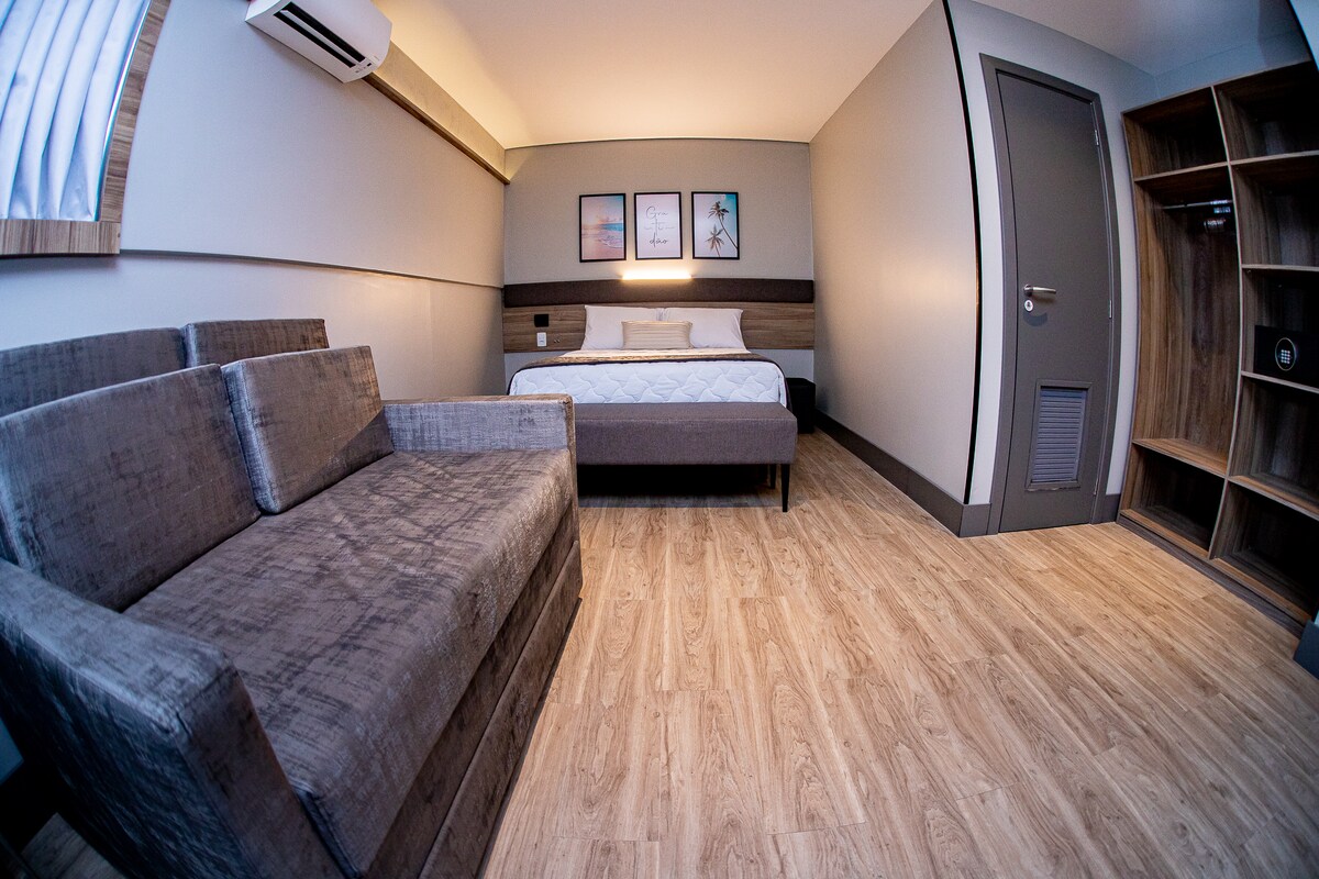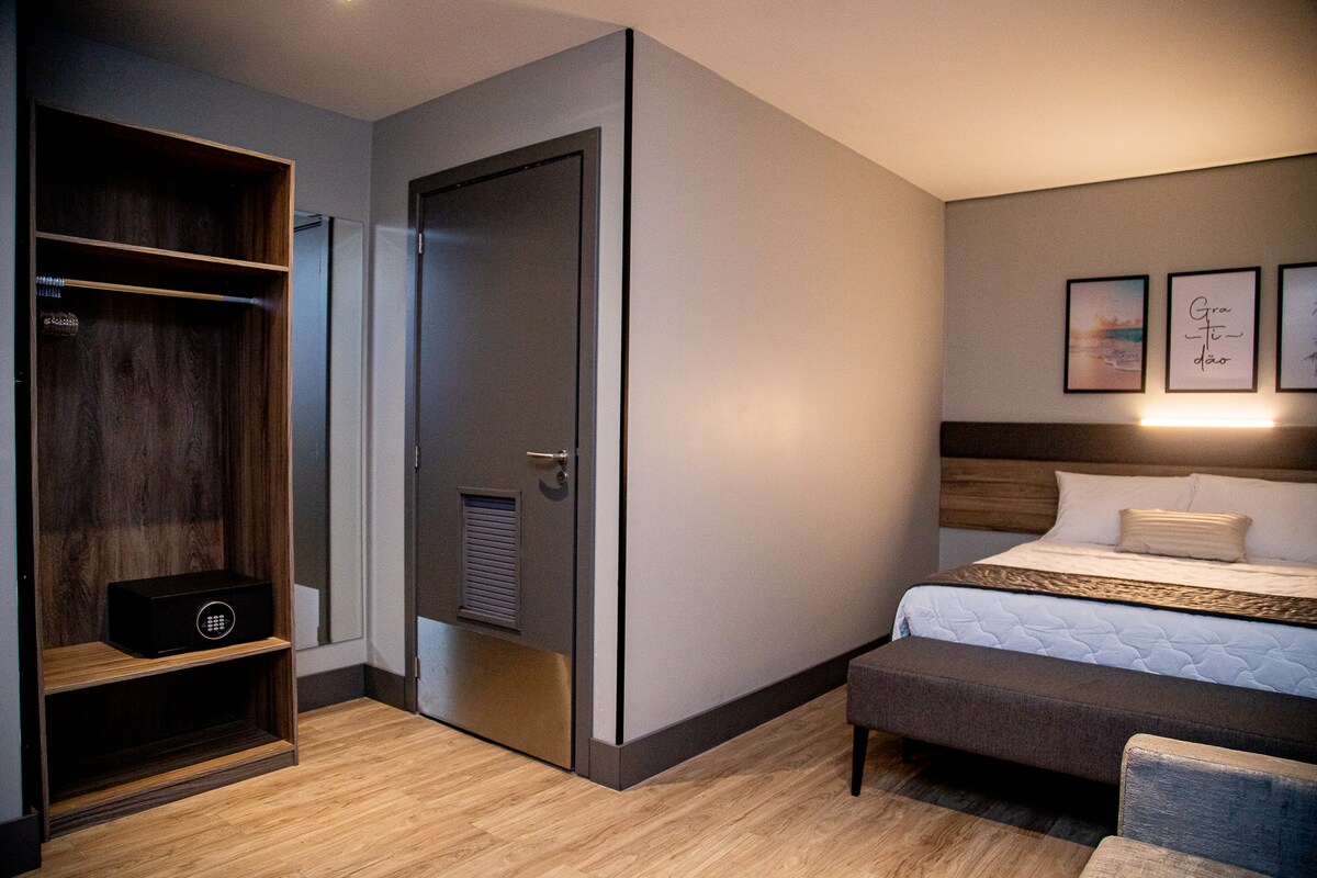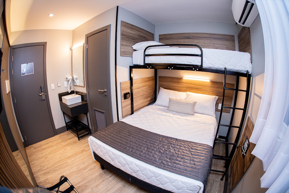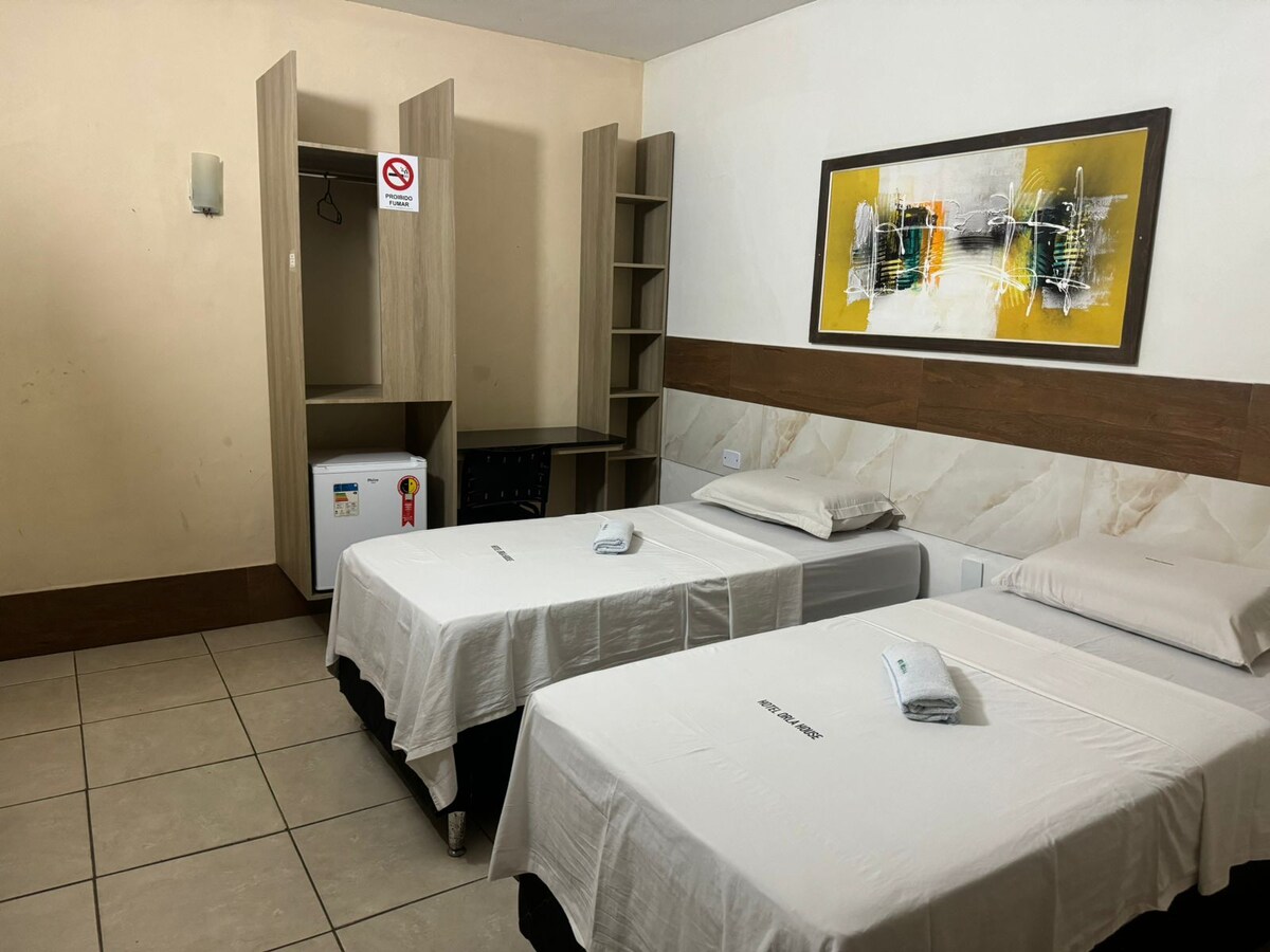 Hotel novo com quartos pequenos e aconchegantes. Muito bem localizado, cercado de bares, restaurantes, farmácia, academia e etc. A melhor região da cidade! não vai querer sair desse lugar charmoso e único. Quarto com 02 camas casal.
