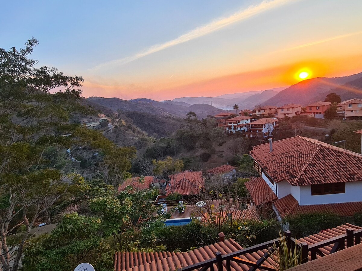 Refugio para quienes quieren sumergirse por completo en la naturaleza. Casa situada con vistas a los cuatro lados. Pico do Cuca, Cachoeira, Floresta y una puesta de sol deslumbrante. Justo en la entrada se siente una curiosidad incontrolable por conocer cada ambiente. En la planta baja tenemos la cocina pequeña pero encantadora, habitaciones con hermosas vistas, baños con cara de casa de muñecas y comedor desde donde subiendo una pequeña escalera llega a la sala de televisión o baja al salón y a la chimenea. Imagínese: Encender una chimenea esculpida en una gran piedra, que sostiene la casa y mirar unos metros más allá del río hacia un hermoso bosque. Todo aquí es una sorpresa, incluso cuando no quieres irte.