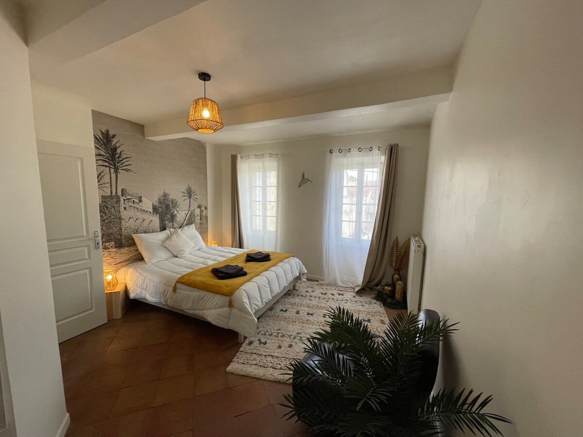 Apartamento de 80 m2 con terraza y garaje (bicicletas o motocicletas), en el segundo piso de un magnífico edificio clasificado. 1 habitación cama de 160 cm 1 habitación cama de 140 cm Gran sala de estar Televisión Cocina equipada Buanderie Terraza amueblada Jardín colectivo Garaje bicicleta y moto Estacionamiento gratuito alrededor Limpieza no facturada, a realizar por su cuenta (o suplemento posible) A 150 m de la gran cuenca y del centro de la ciudad, 45 minutos de Toulouse, Carcasona y Castres, A 5 km de la autovía