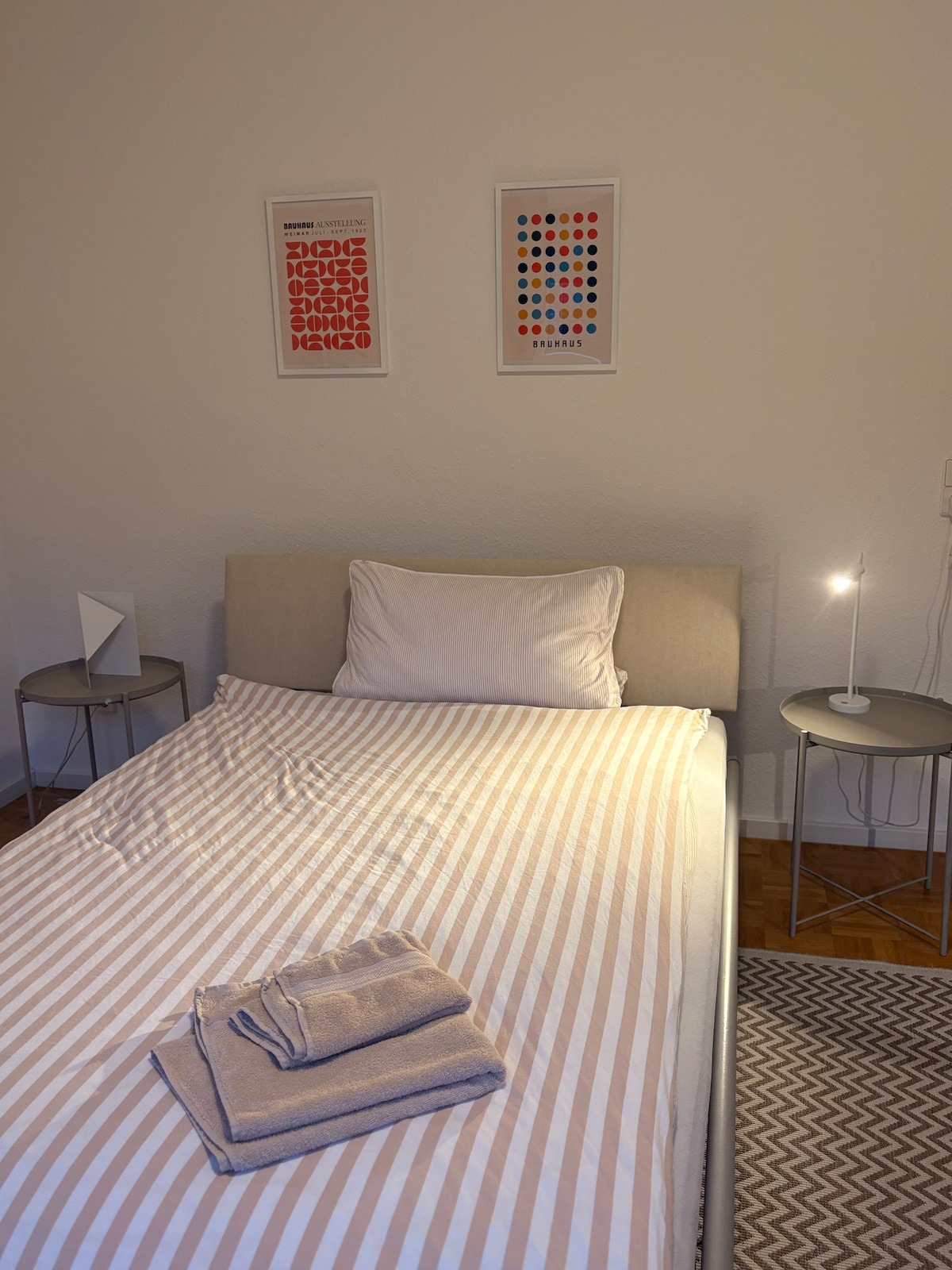 Wir bieten Euch eine helle Dachgeschosswohnung in unserem Dreifamilienhaus an: Sie ist komplett renoviert und zu einer gemütlichen Einraumwohnung ausgebaut. Die Wohnung eignet sich für zwei Personen, wobei ein Doppelbett, sowie eine Schlafcouch vorhanden sind. Supermarkt, Markthalle und die Stadtmitte erreicht Ihr zu Fuß in maximal 10 Minuten. Eine Bushaltestelle haben wir direkt vor der Haustür. Der Bus ist in 10-15 Minuten am Hauptbahnhof. Fahrräder können in der Garage abgeschlossen werden.
