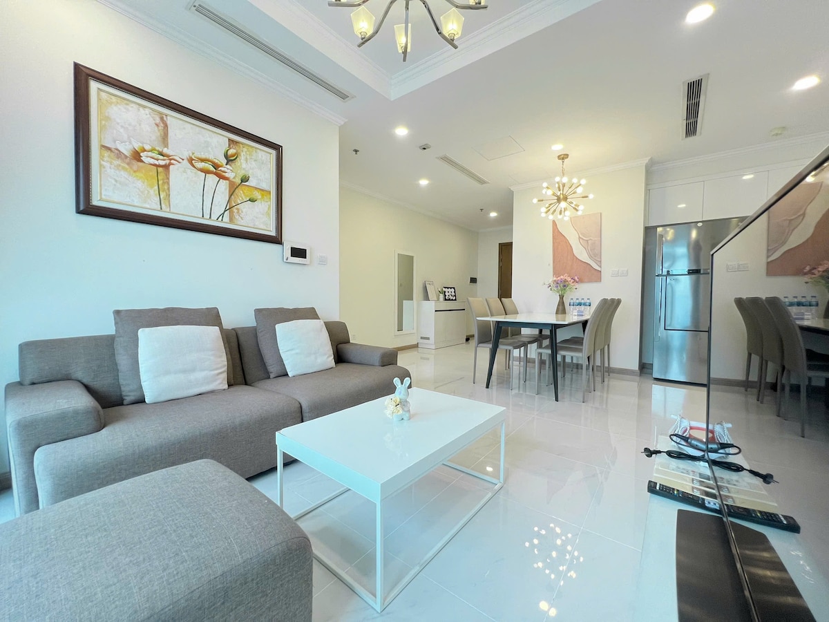 Sencillo en este lugar tranquilo y céntrico. El apartamento se encuentra en Vinhomes Central Park, un lugar ideal para vivir con un espacio de vida moderno y lujoso. Este condominio está en el piso 12 en Landmark 4, que está cerca del punto de referencia 81, el edificio más alto de HCMC. Hay muchas tiendas convenientes, restaurantes, cafeterías cerca, solo algunos paseos. Hay un centro comercial Vincome Center frente al edificio que tiene muchas tiendas de marcas y restaurantes.