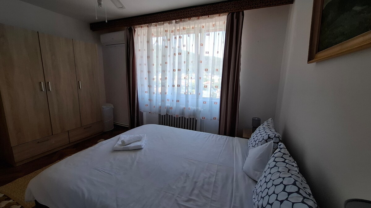 Alquilamos un apartamento independiente, 2 habitaciones, 70 metros cuadrados, en la planta baja en el área de Precista, a 2 minutos de Mall Shopping City y la estación de tren, y a 10 minutos del centro. Detalles del departamento: - Dormitorio con cama doble, TV inteligente y armario; - Sala de estar con cocina abierta, TV inteligente y sofá extensible; - Baño moderno; - Lavadora con secadora. - Caldera de calefacción. La cocina está equipada con: - Refrigerador y congelador; - Microondas. - Filtro de café; - Tostadora. - Estufa y horno; - Platos y utensilios.