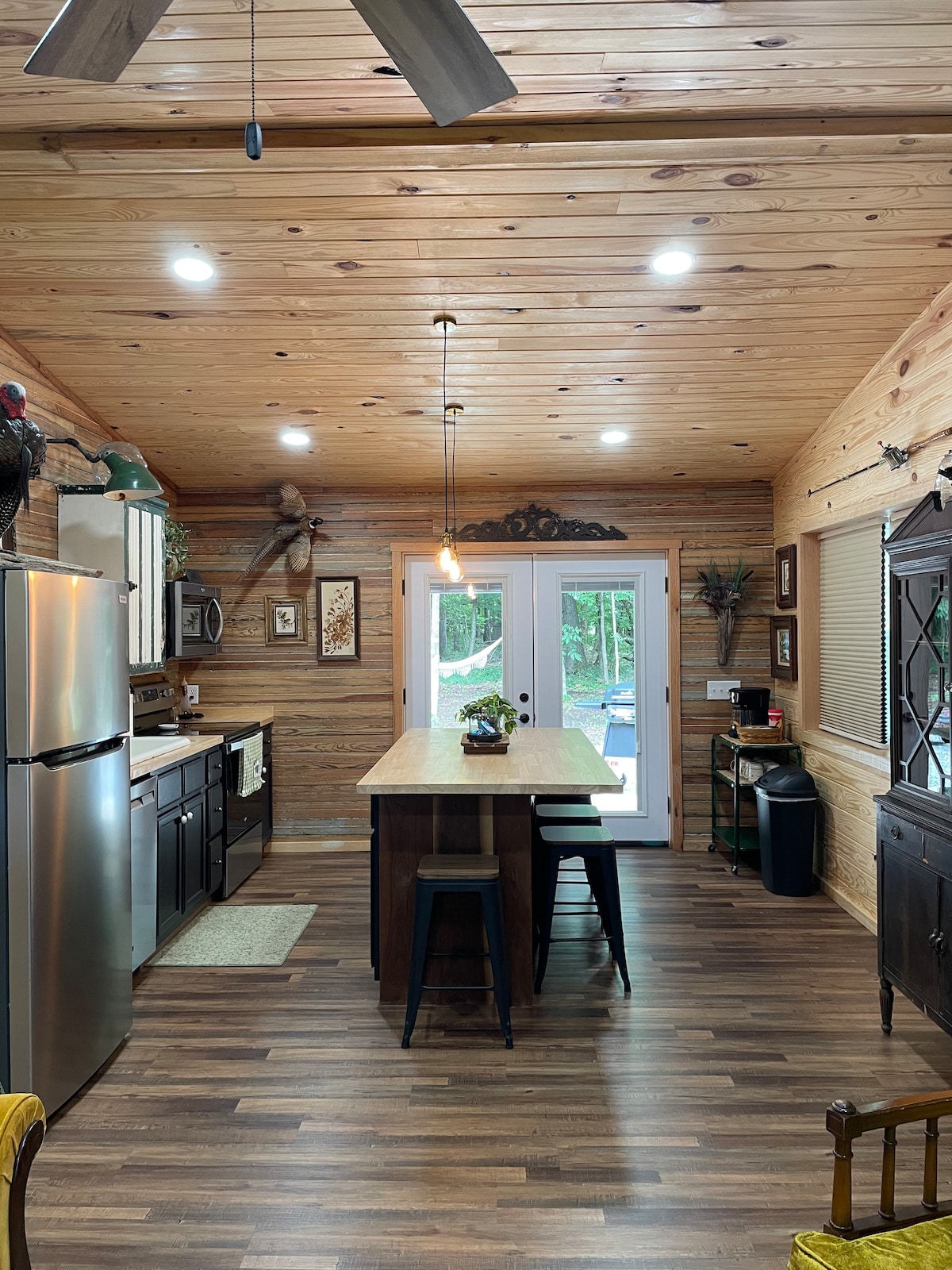 Relájate en esta escapada única y tranquila. La cabaña fue construida en 2020 y cuenta con una rampa y escalones a un porche cubierto con mecedoras/mesa, una zona de cocina/comedor/sala de estar con dos sillones reclinables, uno de ellos un sillón elevador, TV/wifi, zona de lavandería, baño con ducha accesible para discapacitados y un dormitorio con cama tamaño king. Plataforma de aparcamiento abierta de hormigón para 2 vehículos. Barrio tranquilo con poco tráfico. ¡Perfecto para huéspedes maduros con muchas comodidades!