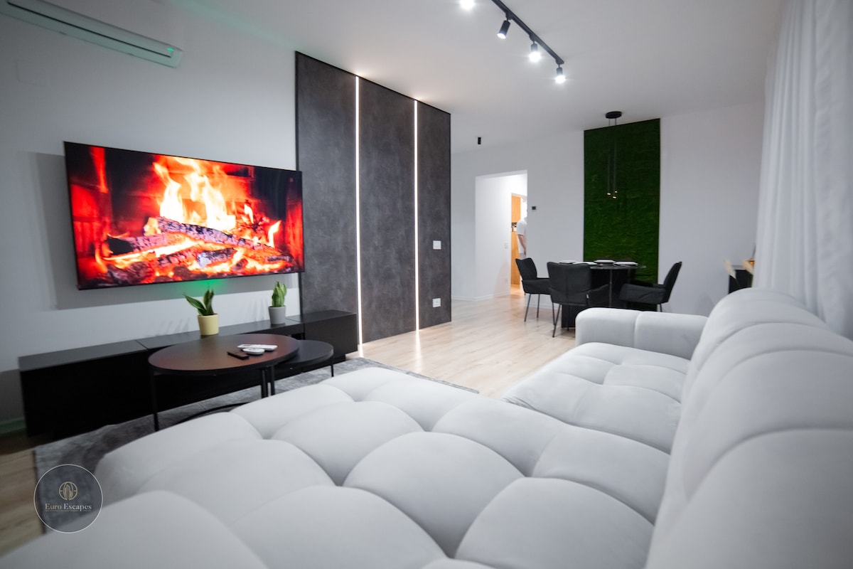 Un departamento inteligente a estrenar y de primera calidad ubicado en el área de desarrollo empresarial de Pipera Nord. Amueblado con materiales modernos y de alta calidad y electrodomésticos nuevos. Llegada autónoma, dispositivos domésticos inteligentes, estacionamiento subterráneo privado, gran televisor inteligente 4K, un espacioso sofá y una cómoda cama tamaño queen para relajarse hacen que este apartamento sea único, entre otros.