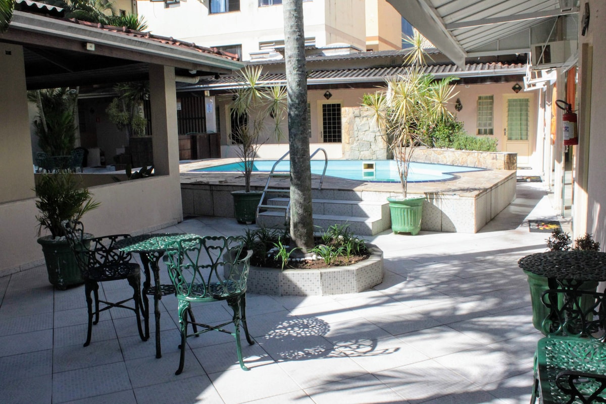 At Enseada Beach, find comfort and convenience in this charming retreat within a house in Guarujá. Quick digital self-check-in, no queues or keys. The guesthouse features a shared swimming pool, gym, and barbecue area. Bed linens and towels are provided, housekeeping is available (subject to availability), and a delicious continental breakfast (coffee and cheese bread) is served until noon. Everything is designed for you to relax and enjoy every moment without worries, just steps from the beach!