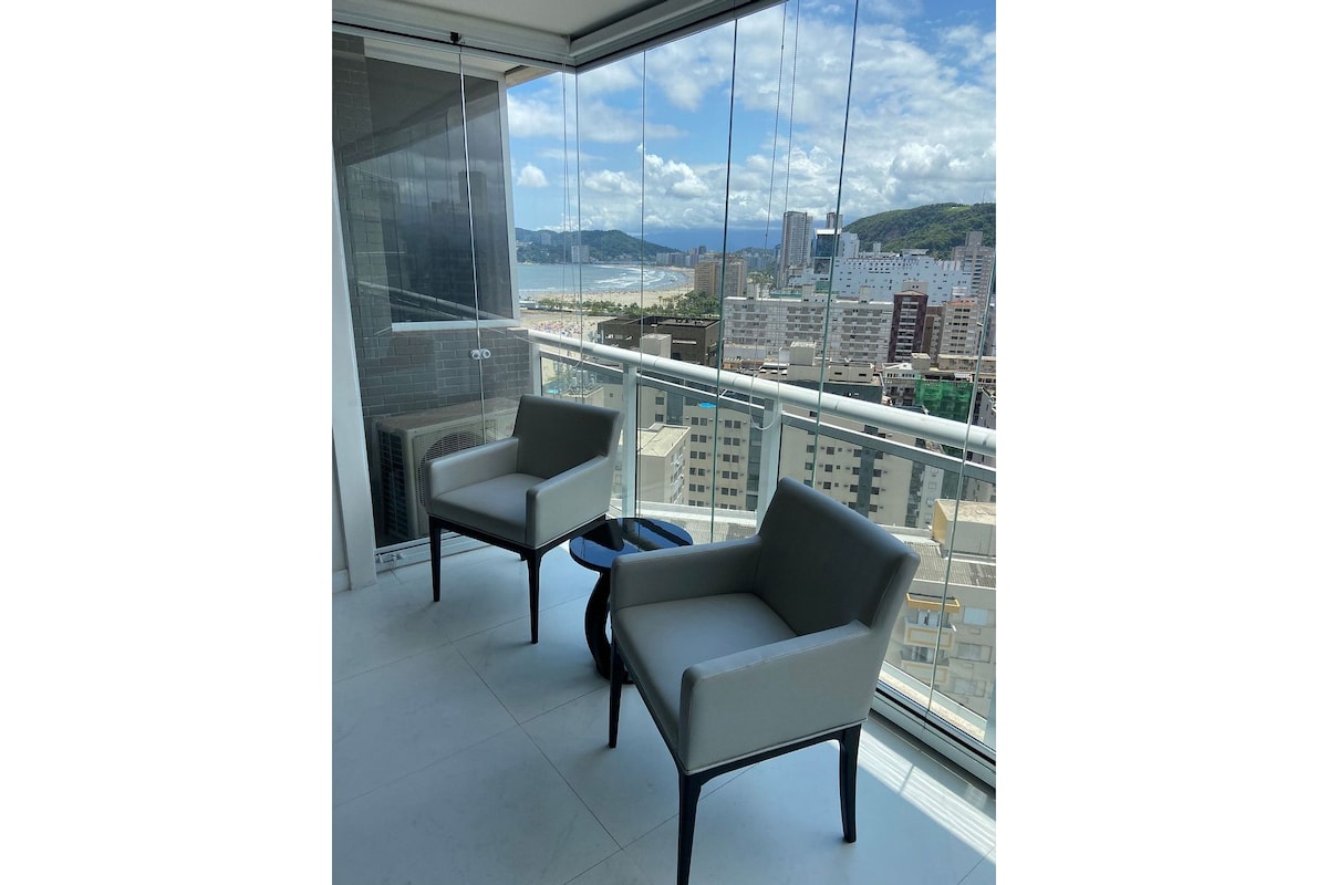 Apartamento de lujo ubicado en Enseada. Piscina infinita y vista al mar. El edificio tiene una infraestructura completa (piscina, piscina infantil, gimnasio, sauna, pista de tenis, ludoteca e incluso máquina de hielo). ¡Departamento completo, aire acondicionado en todas las habitaciones! Cocina equipada con todos los utensilios. ¡Tenemos una estufa, horno, microondas y freidora de aire! ¡Ofrecemos toallas de buddemeyer y sábanas de primera calidad! Tenemos servicio de playa los fines de semana, festivos y en temporada.