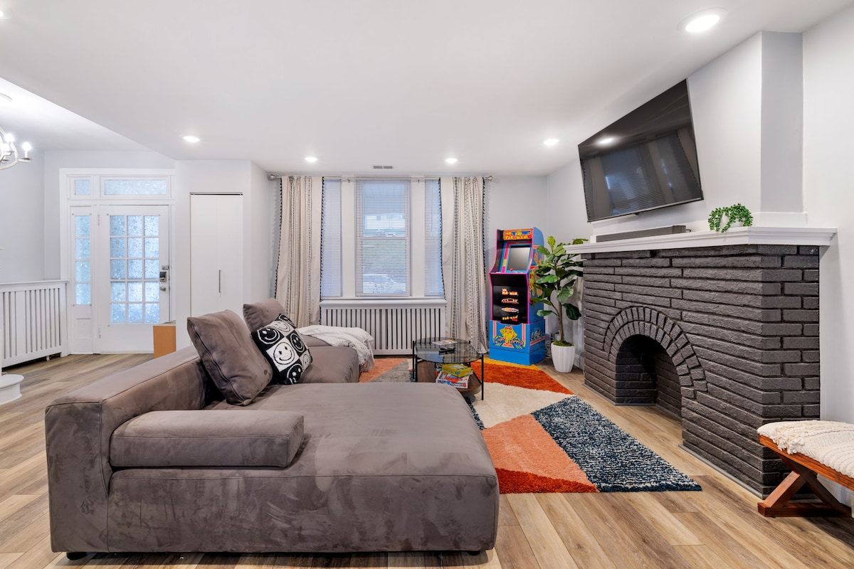 Despiértate en esta casa victoriana cuidadosamente remodelada situada en el histórico barrio de Brighton Heights, ¡a solo 10 minutos en coche del centro de la ciudad. Perfecto para reunirse, este espacio tiene capacidad para 14 personas; el segundo piso cuenta con 2 dormitorios principales, cada uno con su propio baño y una bañera de inmersión para relajarse. En la planta baja, la cocina del chef cuenta con una cocina de gas comercial gourmet y una enorme isla de granito con encimera de cuero totalmente equipada para satisfacer todos tus antojos. Este debe ser el lugar.