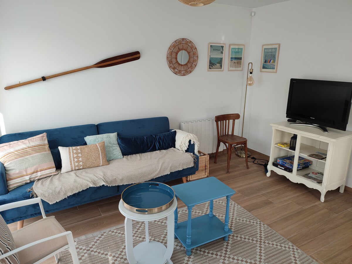 Pequeña casa/apartamento reciente de 40 m² decorado con cuidado, ideal para descubrir la región de la península de Guérande (Mesquer/ Quimiac / Piriac-sur-Mer / Guérande/La Baule) situada entre marismas, tierra y mar Ideal para una pareja o una familia de 4 personas (con sofá cama en la sala de estar) Posibilidad de aparcar el coche en el patio en frente de la casa Posibilidad de hacer paseos a pie, paseos en bicicleta y disfrutar de la playa. Relájese en este alojamiento tranquilo y elegante