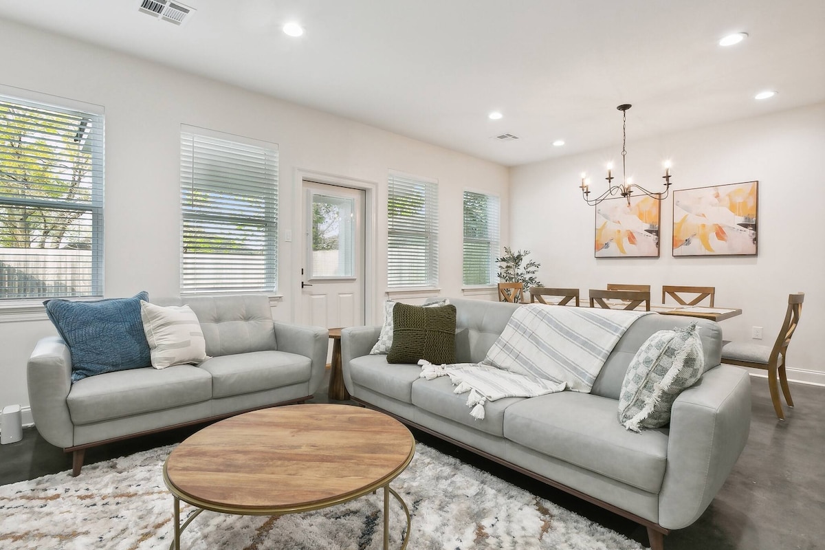 ¡Casa privada de 3000 pies cuadrados y 1 piso que tendrás completamente para ti! Perfecto para grupos con 5 habitaciones, 5 baños, 4,5 baños y medio y 11 camas. Viene con cocina equipada, artículos de tocador, lavadora/secadora, wifi, 5 televisores inteligentes y/o Roku, sala de juegos de billar, juegos de mesa, juegos de mesa de mesa infinita, estacionamiento gratuito y parrilla de gas. Hay una tienda de comestibles y restaurantes a poca distancia.