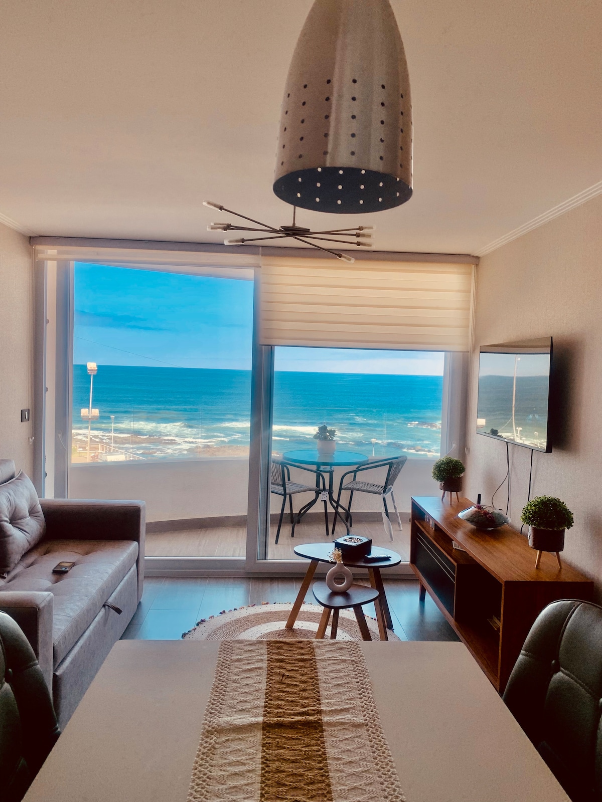 Disfruta de una increíble experiencia en nuestro departamento ubicado en el piso 23 en primera línea frente al mar, con vistas increíbles y cercano a puntos claves de la ciudad (Supermercados-centro comercial- bencineras-Restaurantes) El departamento se encuentra equipado y amoblado completamente para que tengas una experiencia más cómoda, para un máximo de 4 personas con cama matrimonial y sofá cama, una terraza que te permitirá disfrutar y compartir mientras ves un lindo atardecer.