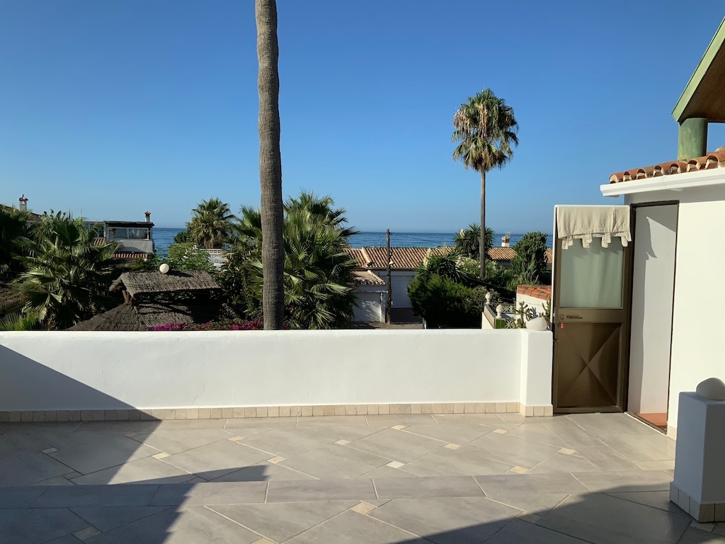 Disfruta del lujo frente a la playa en esta casa adosada de 4 dormitorios y 3,5 baños en Las Chapas, Marbella, en la Costa del Sol de España. Despiértate con vistas panorámicas al Mediterráneo y el relajante sonido de las olas mientras sales de tu terraza privada a las arenas doradas bañadas por el sol. Relájate en tu jacuzzi privado con vistas al mar y disfruta de servicios de primer nivel, como una piscina compartida, wifi rápido y una televisión inteligente de 75 pulgadas. Perfecto para familias, parejas y grupos, esta joya rara se reserva rápidamente. ¡Asegura tu trozo de paraíso!