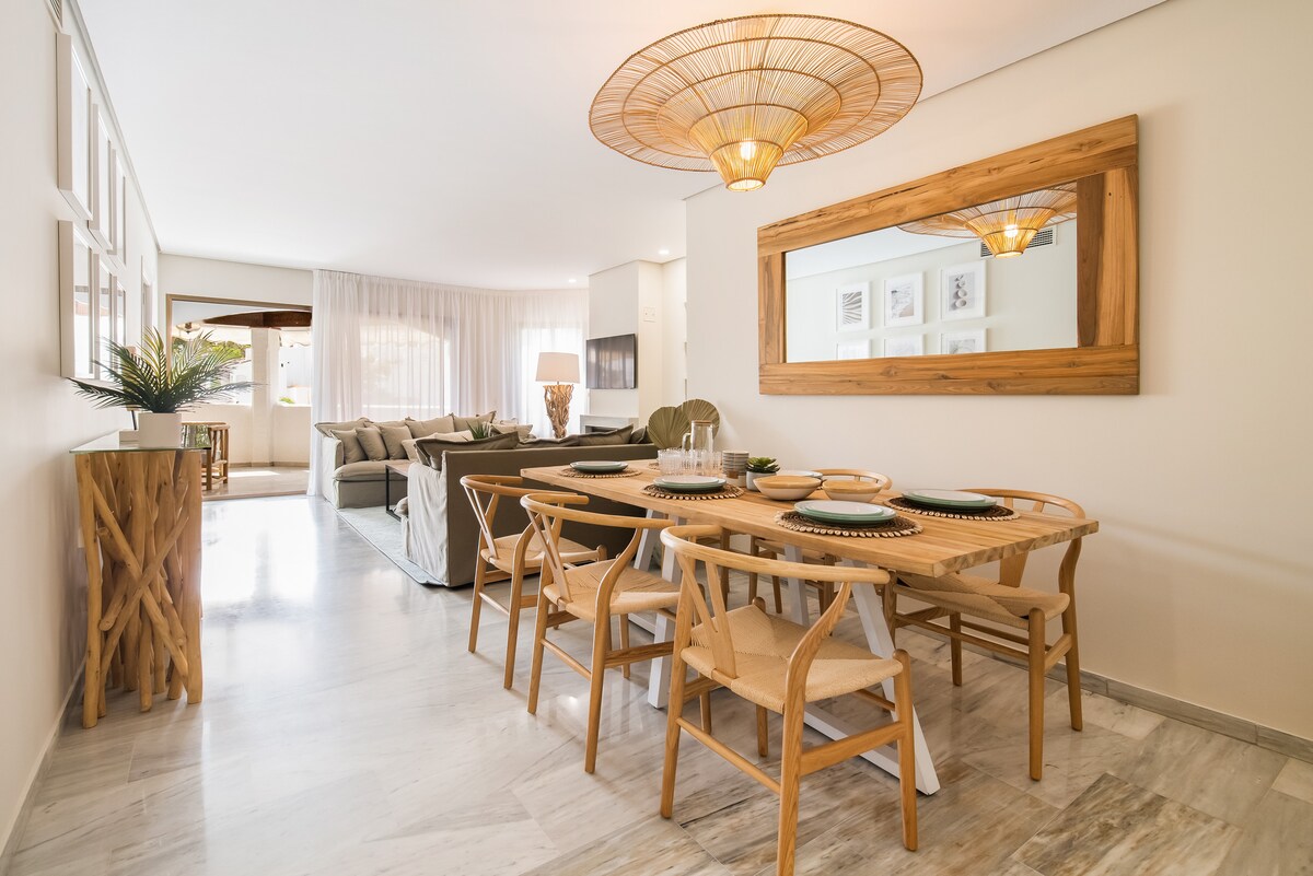 Disfruta de un apartamento cómodo cerca de lo que necesitas. Está a un paso de la mejor playa de Marbella en la zona de Elviria, Golden Beach. Con una amplia terraza que da al jardin y a la piscina con acceso directo a ambos. Dispone de un precioso dormitorio exterior con salida a la terraza y con baño en suite, así como otro amplio dormitorio y un precioso salón con terraza con salida directa al jardín. Sentiras que te encuentras en casa.