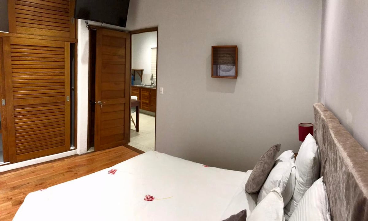 201 - Apartamento estudio con cocina completa y 2 camas tamaño queen.
