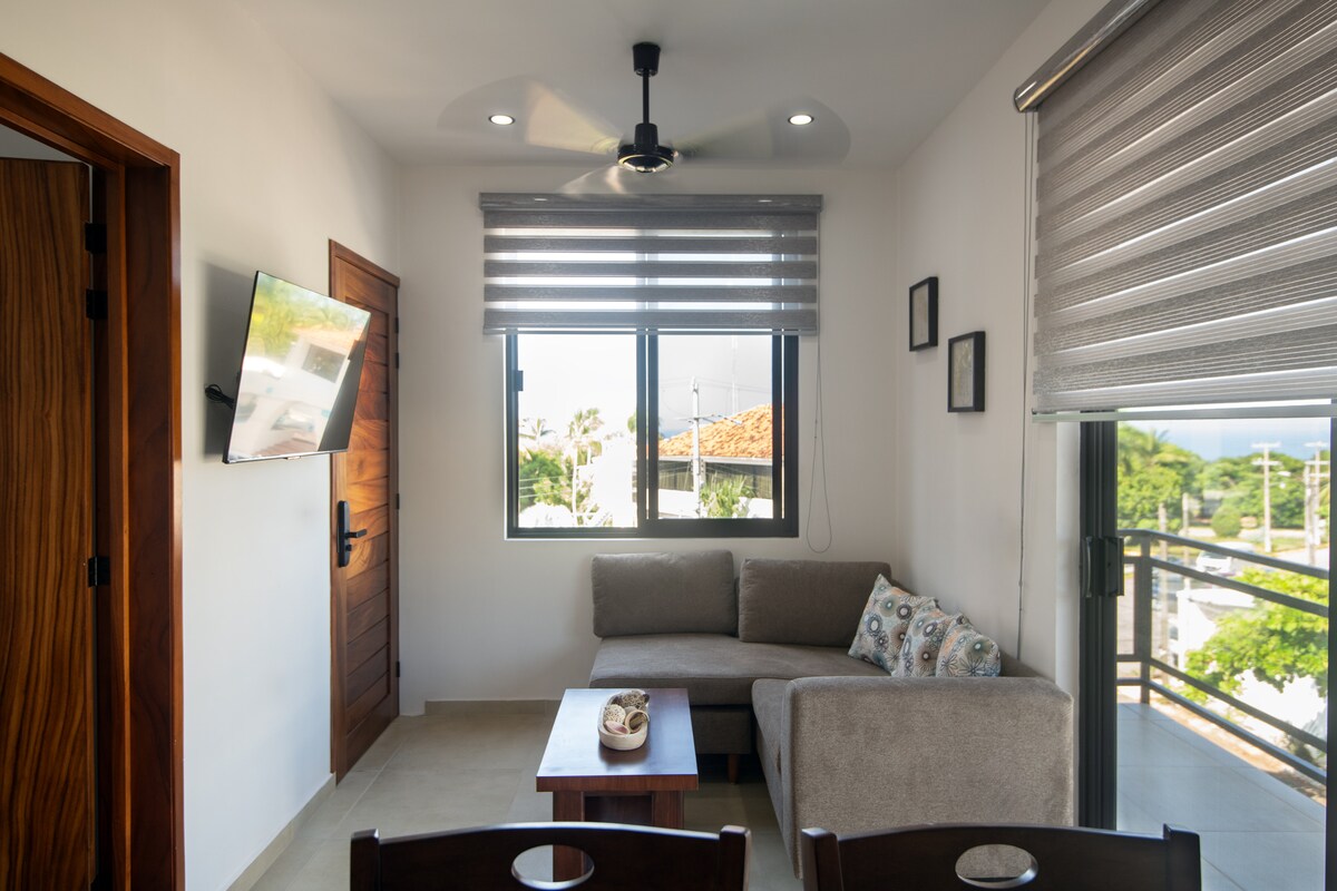 L1 - estilo NYC con a/c, 3 min del mar Kukul