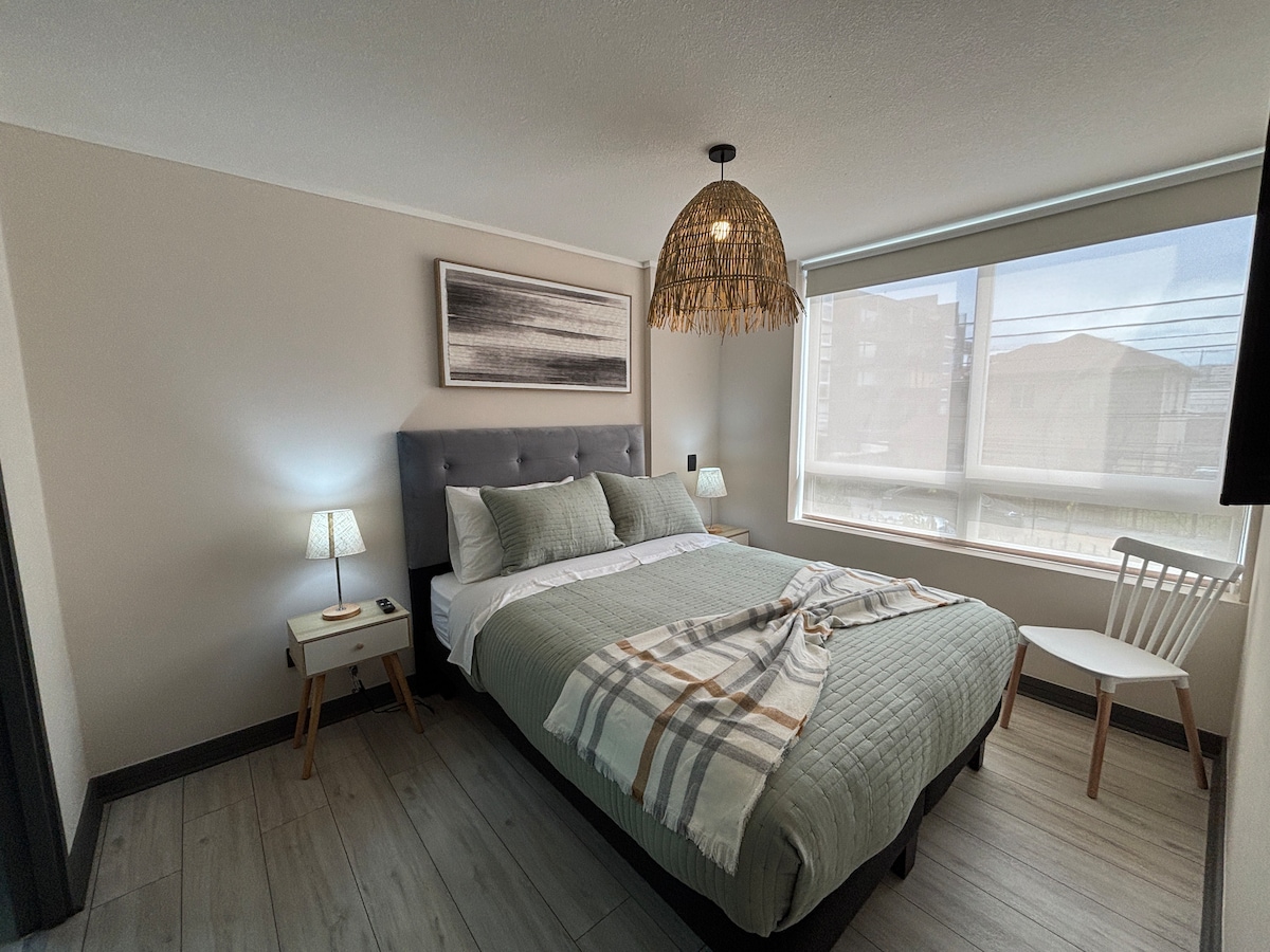 Amplio y acogedor departamento estilo nórdico en un barrio tranquilo y céntrico de Ñuñoa. A 7 min del metro y a pasos de Plaza Ñuñoa, cerca del mall, Estadio Nacional, restaurantes y comercios. Cuenta con cerradura electrónica, seguridad 24/7 y estacionamiento privado en el edificio. El edificio ofrece gimnasio, piscina y lavandería. Incluye aire acondicionado, lavadora- secadora, cocina full equipada, Wi-Fi rápido y área de trabajo. Ideal para una estadía cómoda y bien conectada en Santiago.