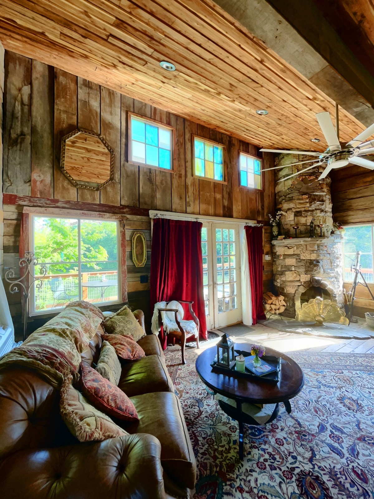 Escápate y relájate en una caprichosa casa de campo octogonal rodeada de un exuberante jardín, con vistas a un estanque para nadar y al río Wakarusa. Dispondrás de todo lo necesario para una cita romántica o un lugar inspirador para reducir la velocidad y volver a conectar con la naturaleza. • Sala de estar abierta de 1 dormitorio con mucha luz natural y hermosas vistas. • Se proporciona carrito de café con microondas y quemador eléctrico y mini frigorífico. • Bote de remos en el estanque inferior y 2 redes de golf de disco disponibles para divertirse. •NO SE PERMITEN MASCOTAS.