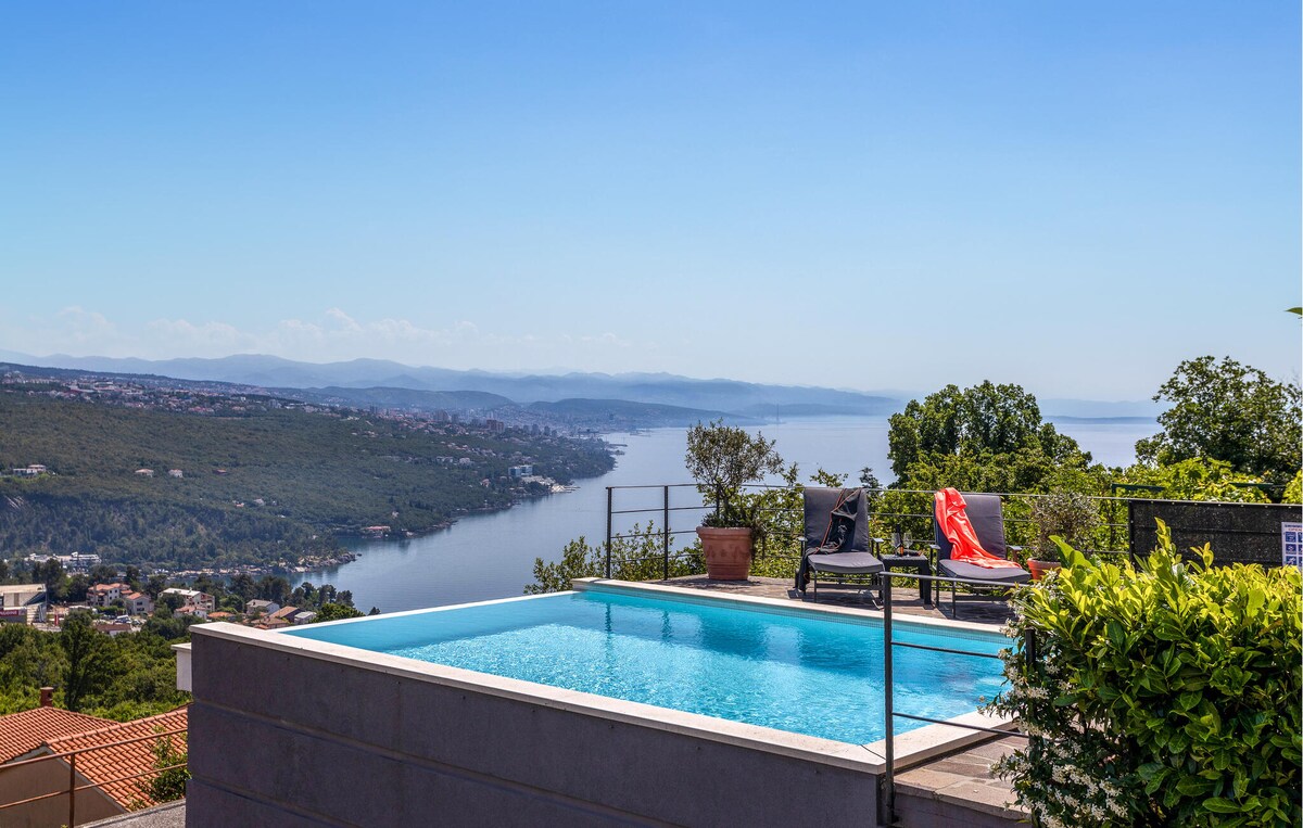 ¡Descubre el paraíso en Sky Pool Villa en Medveja, Croacia! Esta villa de lujo construida en 2020, situada en medio de una exuberante vegetación, cuenta con una piscina infinita climatizada con impresionantes vistas al Golfo de Quarnaro. Disfruta del jacuzzi, la sauna y la barbacoa al aire libre en la amplia terraza y el jardín privado. En el interior, disfruta de una cocina de última generación, una acogedora sala de estar con un televisor de alta definición de 70 pulgadas y dos elegantes dormitorios. Cada momento aquí promete tranquilidad y recuerdos inolvidables. ¡Reserva ahora para la mejor escapada!