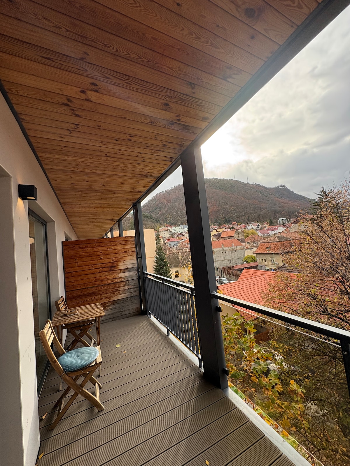 Estudio moderno en Brașov, tranquilo y totalmente equipado A solo 25 minutos a pie, 4 minutos en coche o 10 minutos en autobús del centro de la ciudad. •Capacidad para 4 personas: cama doble + sofá extensible •Baño privado •Cocina: nevera/congelador, té, café y cafetera, hervidor de agua • Lavado y secado de ropa (10 €/carga) • Escritorio y wifi rápido •Equipo de gimnasio •Terraza para 2 personas (se permite fumar) •Aparcamiento gratuito en la calle o en el patio • Tiendas y parada de autobús en el exterior Este estudio ofrece comodidad y todo lo que necesitas, todo bien conectado en Brasov.