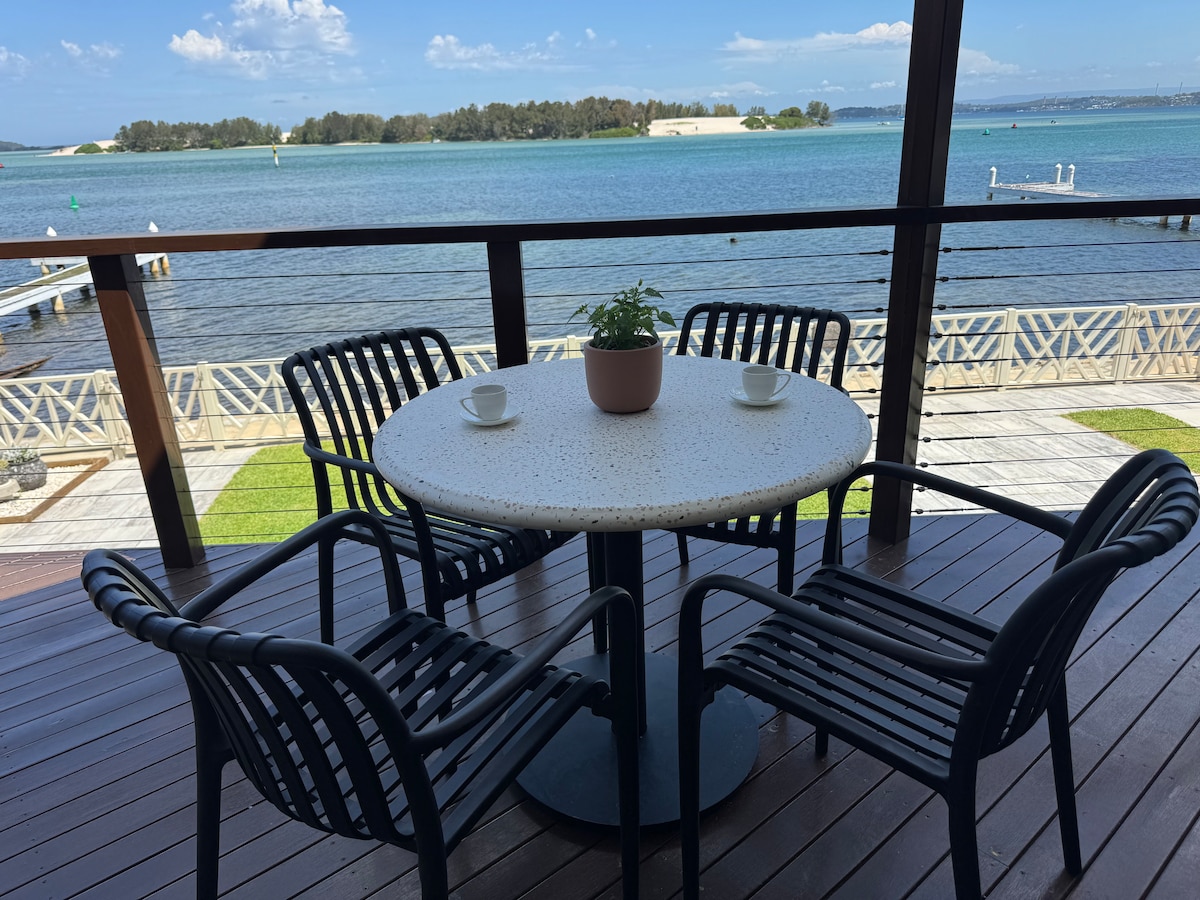 Nuestro encantador estudio está a solo 3 metros del borde de las aguas del lago Macquarie. Simplemente relájate y observa los yates navegar, unas vistas magníficas. Es bastante romántico sentarse a la luz de la luna y sentir la brisa del lago por la noche. Durante el día, es posible que quieras probar suerte en un lugar de pesca desde nuestro muelle o disfrutar de un paseo por la calle principal mirando a través de las tiendas boutique de Toronto a 2 minutos de distancia. Una fila de cafeterías/restaurantes gourmet frente al lago.