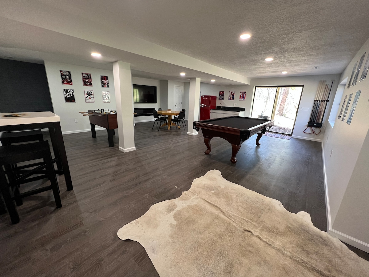 The Hidden Lodge es un refugio de 5 dormitorios y 3 baños ubicado en un terreno arbolado cerca del lago Saylorville. Es un lugar estupendo para alojarse con la familia, los amigos o para viajes de trabajo. El Lodge ofrece una escapada acogedora con comodidades modernas y un toque de encanto rústico. El sótano cuenta con mesa de billar, dardos y juegos de mesa para tu entretenimiento. Los espacios al aire libre incluyen una terraza con una vista serena y una gran chimenea para disfrutar de la zona. ¡Ponte en contacto con nosotros para obtener información sobre descuentos de temporada o para contratistas!