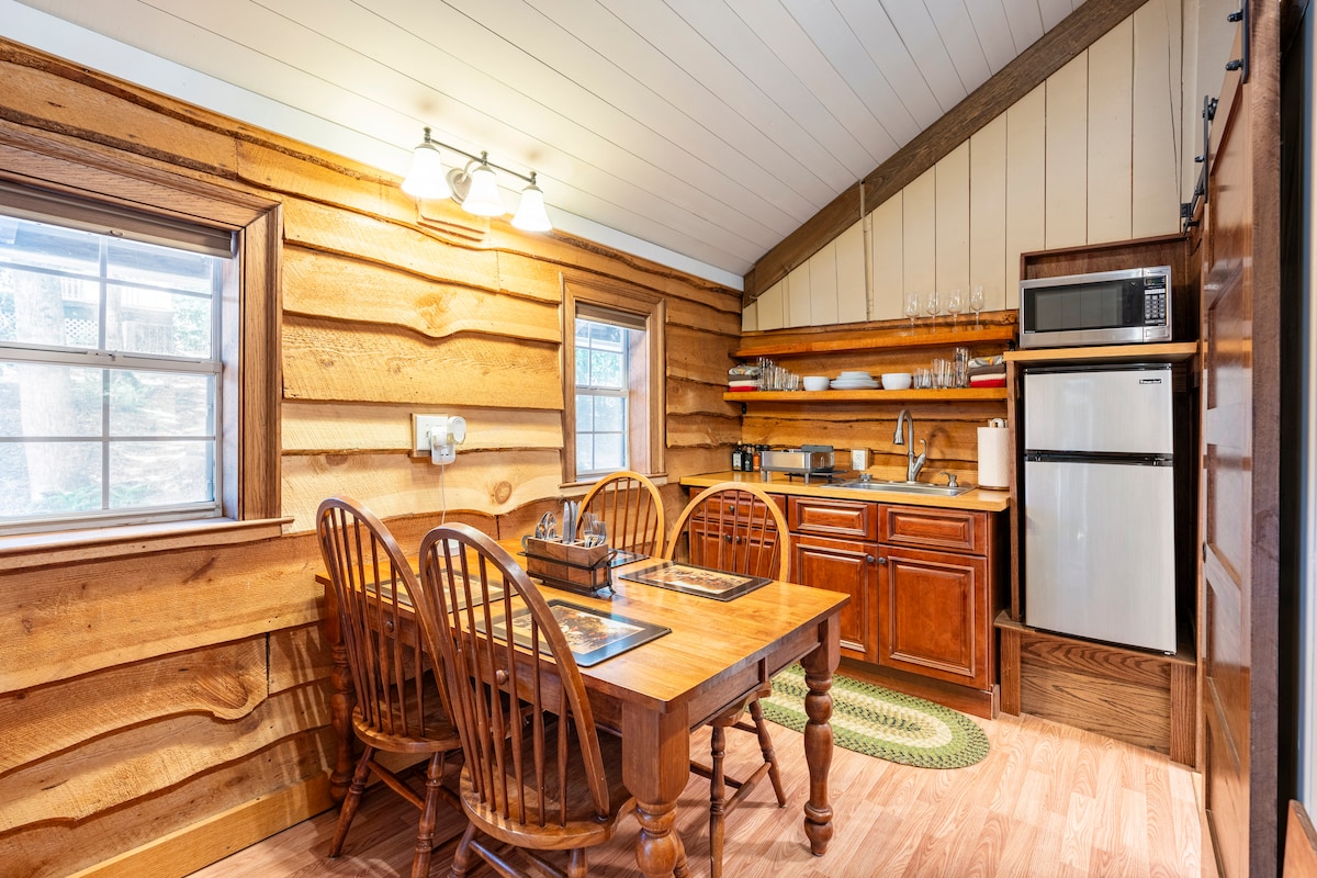 A solo 5 millas del TIEC, una acogedora casa de huéspedes en el bosque, ubicada detrás de la casa principal con estacionamiento privado (y estacionamiento adicional para camiones grandes) y espacio exterior privado. Esta cabaña estudio es perfecta para familias o una pareja que busca una escapada. A los niños les encantará la cama loft (dos camas individuales) y la cocina compacta te ofrece todos los servicios que necesitas para cocinar y servir una comida completa si lo deseas. Te encantará la privacidad y seguridad de la comunidad cerrada.