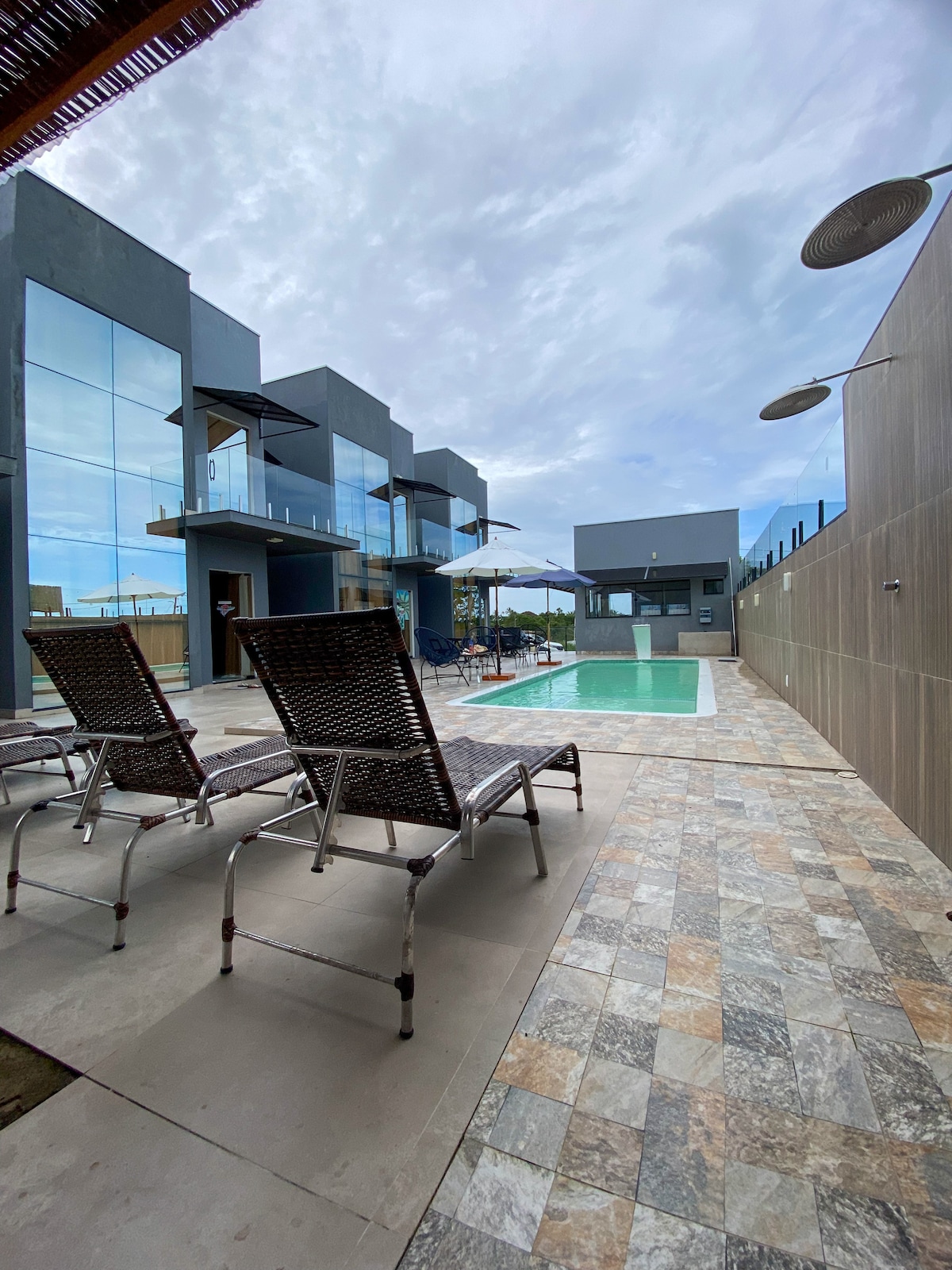 Chalés con piscina y cumuruxatiba frente al mar