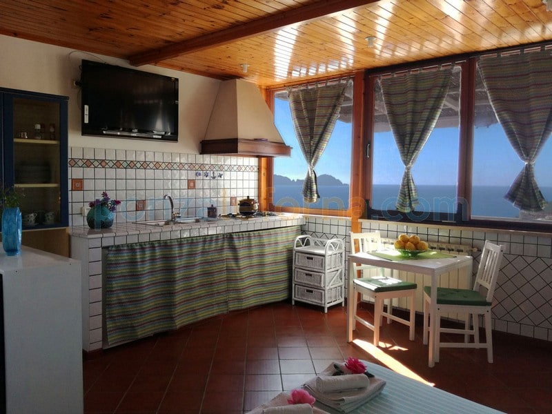 Monolocale con terrazzo privato con vista su Palmarola. Unico ambiente, ampio e comodo. Angolo cottura dotato di frigorifero con freezer, letto matrimoniale con ampio armadio, bagno con box doccia. Ideale per coppie che amano i paesaggi romantici, ma anche per piccole famiglie che cercano una soluzione particolarmente fascinosa. Terrazzo privato dove è possibile mangiare o semplicemente ammirare degli incantevoli tramonti.