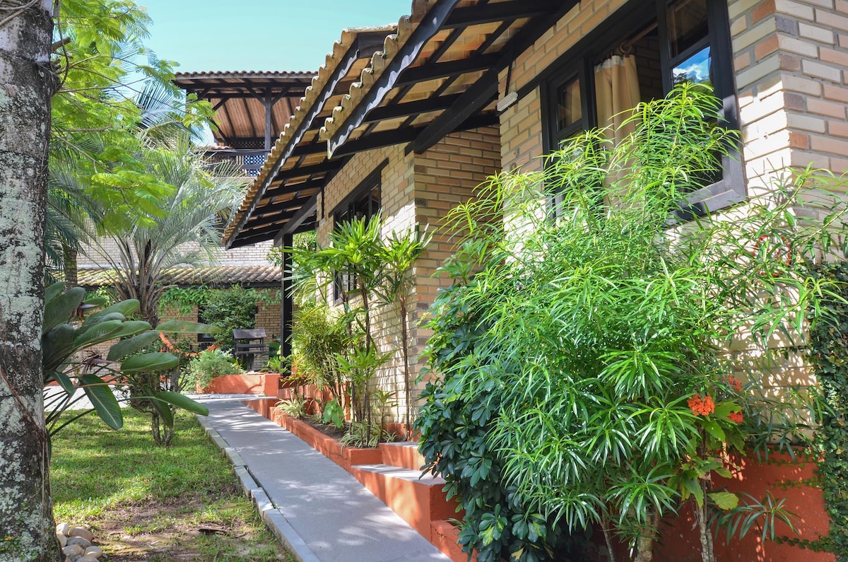 Chalés para casal em residencial tranquilo, perfeito para quem busca descanso, privacidade e contato com a natureza, com jardim exuberante e clima acolhedor, lugar pra desacelerar de verdade. ✔️ Estacionamento ✔️ Cozinha equipada ✔️ Dormitórios com TV e ar. ✔️ Massagem e terapias a parte Na área compartilhada piscina, churrasqueira e sala de estar para curtir bons momentos a dois. Ideal para quem quer estar perto da praia e, ao mesmo tempo, em um ambiente calmo e familiar.