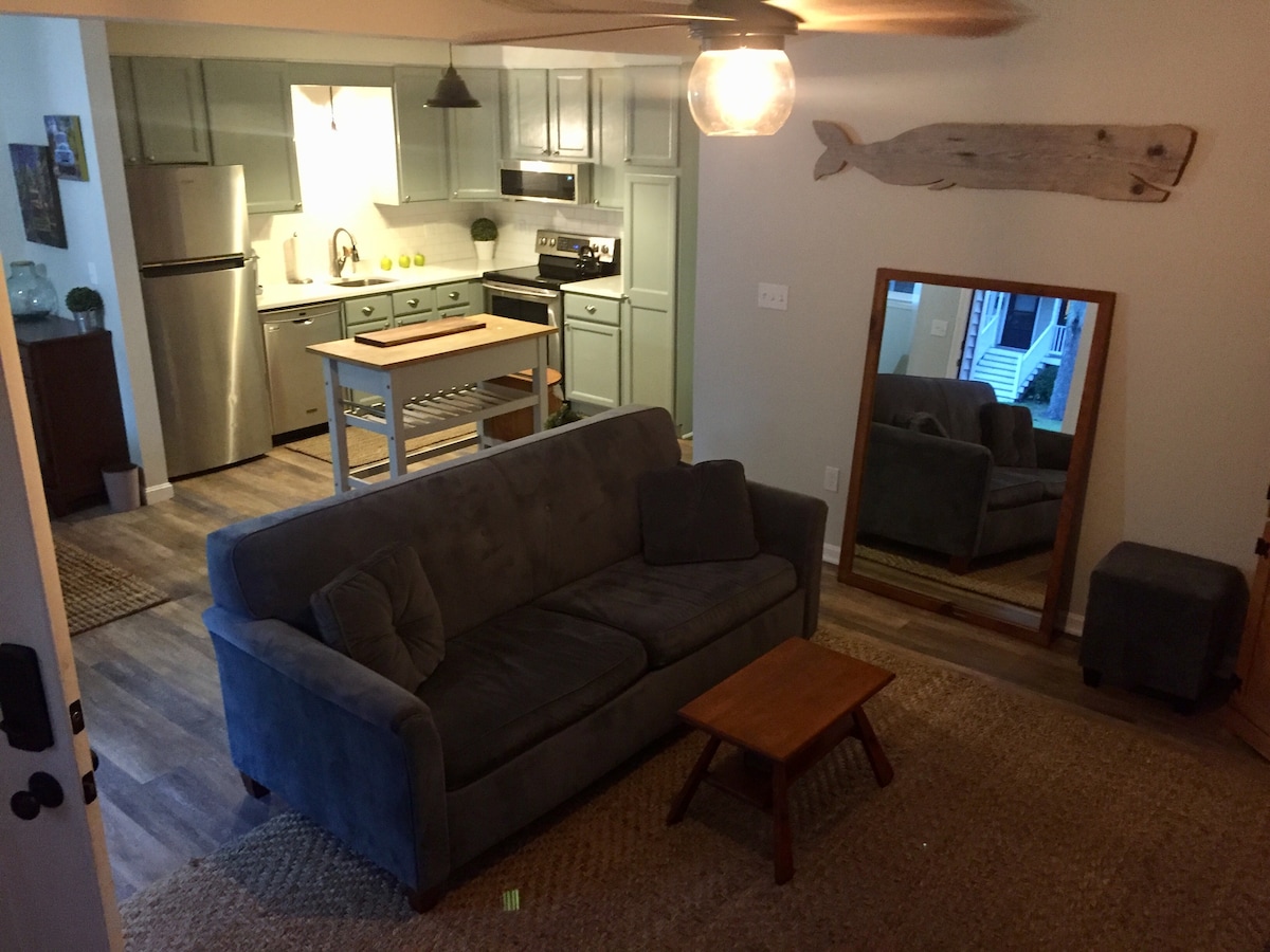 Este elegante apartamento moderno a nivel del jardín está bien ubicado en Kittery y proporciona recomendaciones locales de los anfitriones que viven en la unidad superior. La cocina está totalmente equipada con todas tus necesidades de cocina y café, e incluye una nevera debajo de la encimera, un congelador debajo del mostrador y un microondas. La casa está a menos de una milla del centro de Kittery y las puertas del astillero, y a menos de dos millas de Portsmouth. (Todos muy transitables con aceras) Número de licencia STR de Kittery: ABNB-25-43