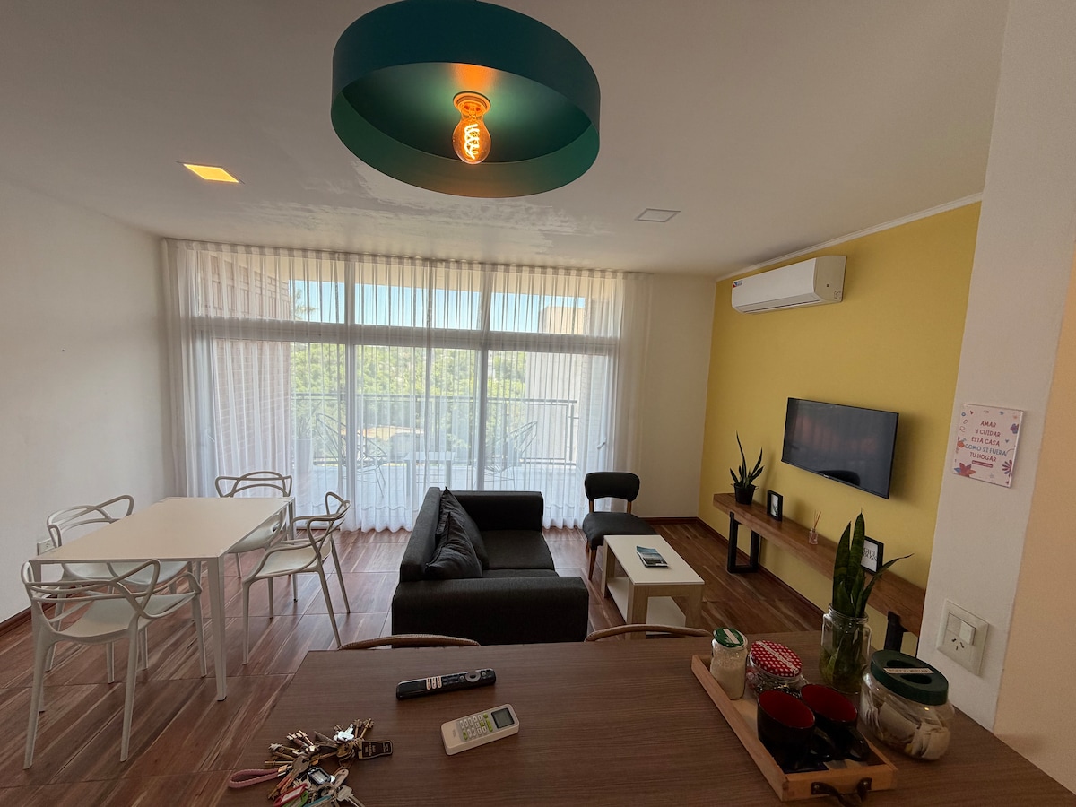 Apartamento con balcón vistas al río y excelente ubicación!📍. A pocos pasos de la Costanera, Playa San José🏖️, restaurantes🍴 y de Shopping Costanera 🛍️. Habitación principal con cama matrimonial 🛏️, sala con sofá cama(2.10 x 0.95 x 0.92) 🛋️, comedor, cocina integrada y baño moderno 🚿 Seguridad 24/7 🔒 y servicio de lavandería dentro del edificio para tu comodidad. Aires Splits en habitación y sala-comedor.