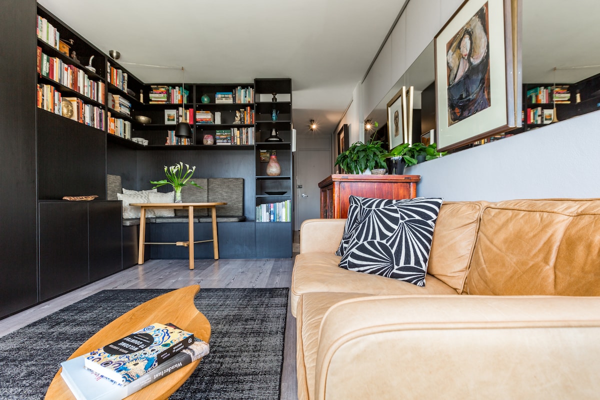 Este luminoso y extravagante apartamento situado en el corazón del barrio de Darlinghurst, en el centro de Sídney, está inundado de luz, arte ecléctico y baratijas y cuenta con unas vistas increíbles del barrio y de los barrios circundantes. Es el tipo de almohadilla que proporciona el ambiente ideal para escribir notas en tu diario, relajarte con un gran libro, tocar el piano o simplemente relajarte con una sabrosa copa de vino o dos. Perfecto para el viajero solitario o la pareja.