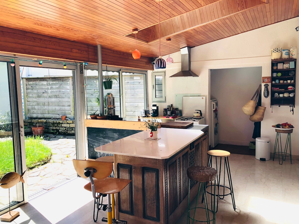 Estudio de 25 m2 en una extensión de madera contigua a nuestra casa. En el corazón de la bahía de Audierne, a medio camino entre la Pointe du Raz y la Torche. Situado en el pueblo de Plovan, a 800 m del mar, cerca del GR 34. Volumen agradable y tranquilo. Cama grande de 160x200. Cocina equipada. Entrada independiente, espacio exterior privado y terraza cubierta soleada por la mañana. Para estancias largas, se puede poner a su disposición una lavadora.