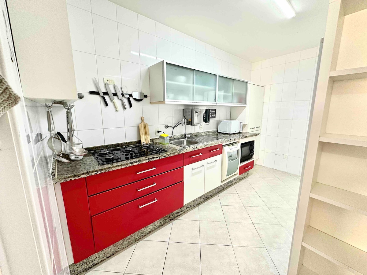 Apartamento completo de 3 dormitorios (2 suites +1) con vistas panorámicas y ubicación privilegiada en la playa de Cabeçudas. El amplio y acogedor espacio ha sido preparado y equipado para alojar con comodidad y confort: Cama box Doble, WiFi, Smart TV 50'', Cocina completa, Ducha de gas, Lavadora, Garaje privado y balcón con Zona Gourmet. Espacio ideal para familias y parejas. ¡Disfruta de la vista espectacular y disfruta de las tranquilas aguas de la playa más encantadora de Itajaí!