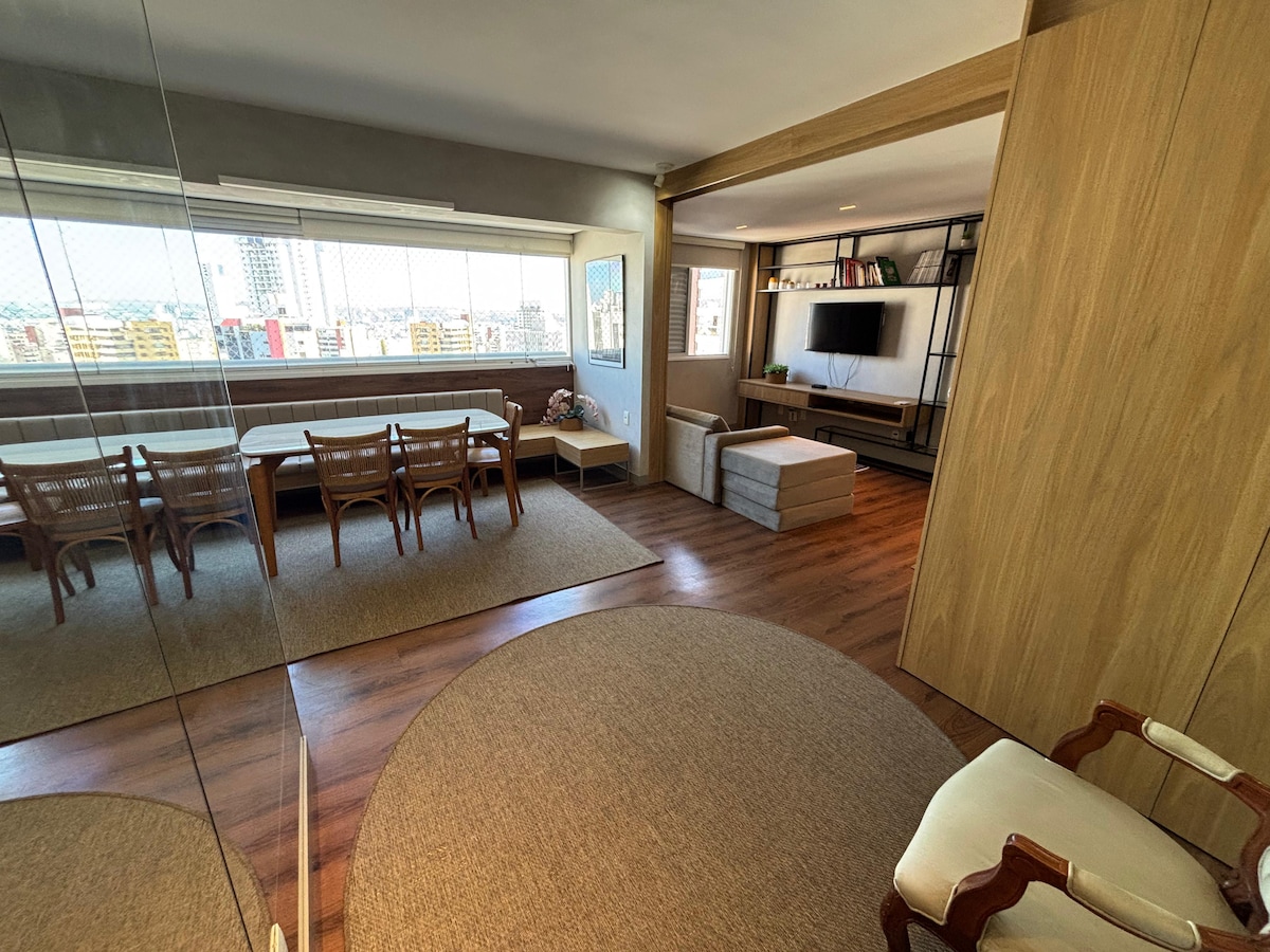 Lugar especial, cerca de todo. Piso nuevo, muy bien decorado, con TV (Netflix), aire acondicionado, cama queen, sofá cama, ropa de cama y toallas limpias y suaves, lavadora/secadora, nevera, purificador de agua refrigerado, cocina, balcón con vistas increíbles, 1 plaza de aparcamiento. El edificio es de alto estándar. Piscina infinita, vista panorámica y climatizada, hidromasaje, gimnasio y sauna en la azotea - piso 40. Espacios temáticos, lavandería, pista de squash, jardín.