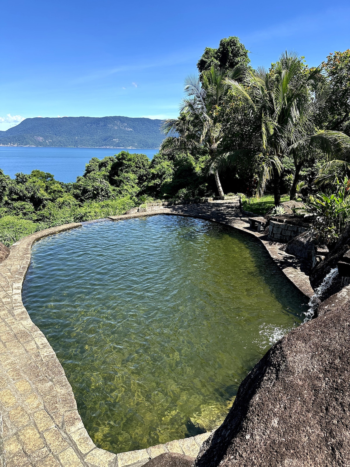 Propiedad en primera línea de playa con hermosas vistas y amplio jardín. La casa tiene vistas al mar desde todos los ambientes, desde la mesa de desayuno hasta la comodidad de la cama. Ubicada en una ARIE (área de relevante interés ecológico), donde se encuentra el Instituto de Investigaciones Marinas de la Usp. Acceso a la propiedad y a 2 playas controladas por tierra. Frente a la playa hay un bar flotante para embarcaciones y puede haber música.
