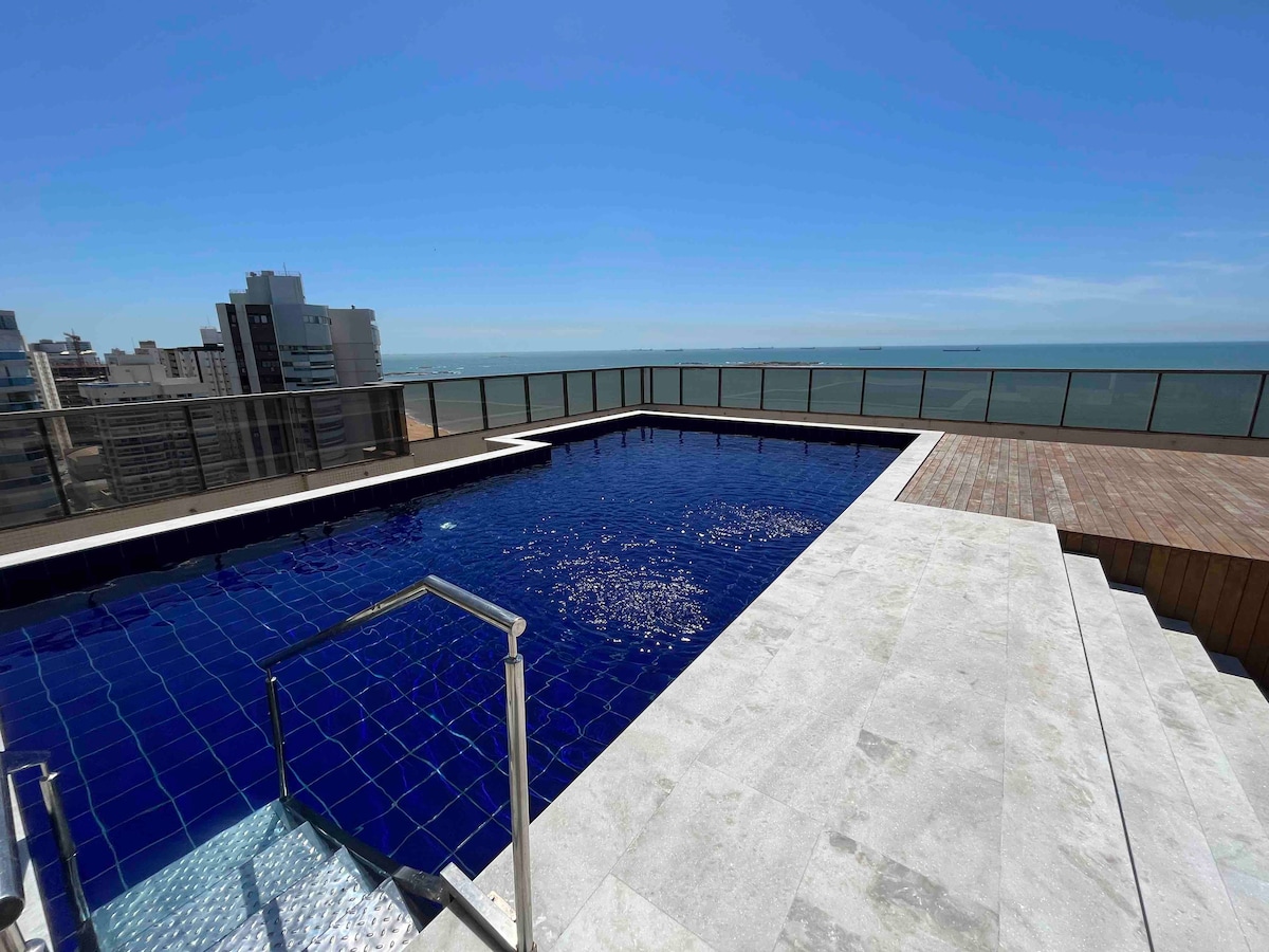 Ático con jacuzzi y vistas al mar con techo solar. Muy espacioso (65 m2). ¡El mejor punto de Praia da Costa, la mejor playa de Vila Velha! Cocina totalmente equipada con utensilios diversos para bar, coctelería y copas finas. Suite climatizada, cómoda y acogedora. ¡Simplemente la mejor experiencia de alojamiento en Vila Velha! ¡Tu estancia aquí será perfecta! ¡¡¡SOLO VEN!!!
