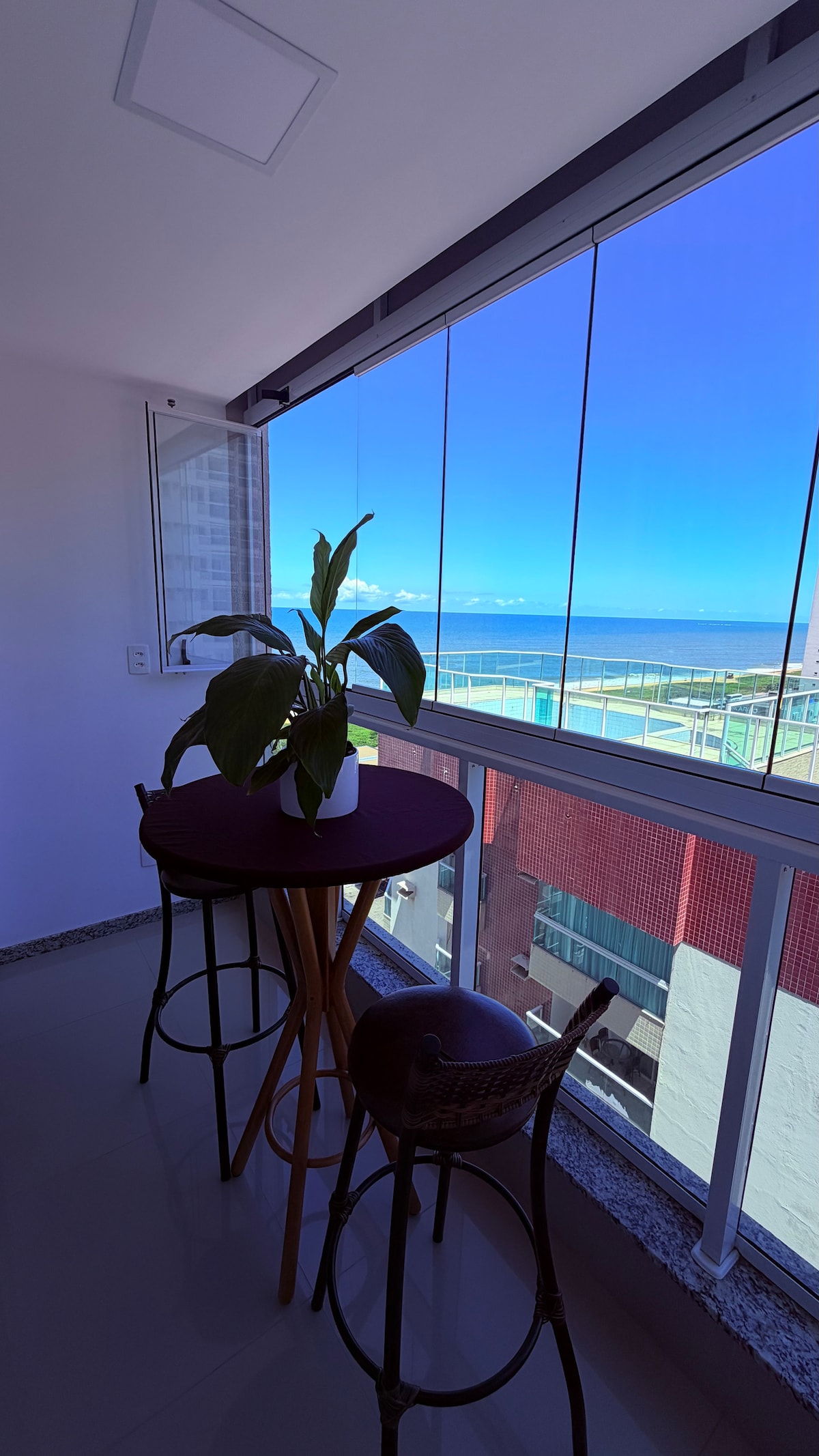Disfrute de una estancia memorable en este lujoso y acogedor apartamento de 2 dormitorios junto al mar Totalmente equipado con hidromasaje con cromoterapia, cama king y camas individuales reversibles para parejas, televisores en los dormitorios y en la sala de estar, wifi y comodidades para bebés, ofrecemos comodidad, seguridad con conserjería las 24 horas y ocio con piscina en la azotea con vista al mar Tendrás una experiencia única en Vila Velha cerca de todo ¡Reserva ahora y ven a vivir momentos inolvidables con tu familia!