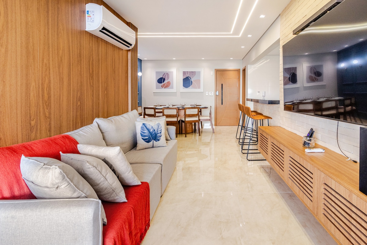 Apartamento nuevo, recién decorado, para que te relajes con toda la familia en este alojamiento tranquilo, con balcón gourmet, piso 13, seguro con red de protección, con espacio para un coche en el garaje cubierto, barbacoa de carbón, limpio e higienizado para tu comodidad, wifi de alta calidad, Vivo Fibra. Check-in de 15:00 a 21:00. Check out a las 12:00